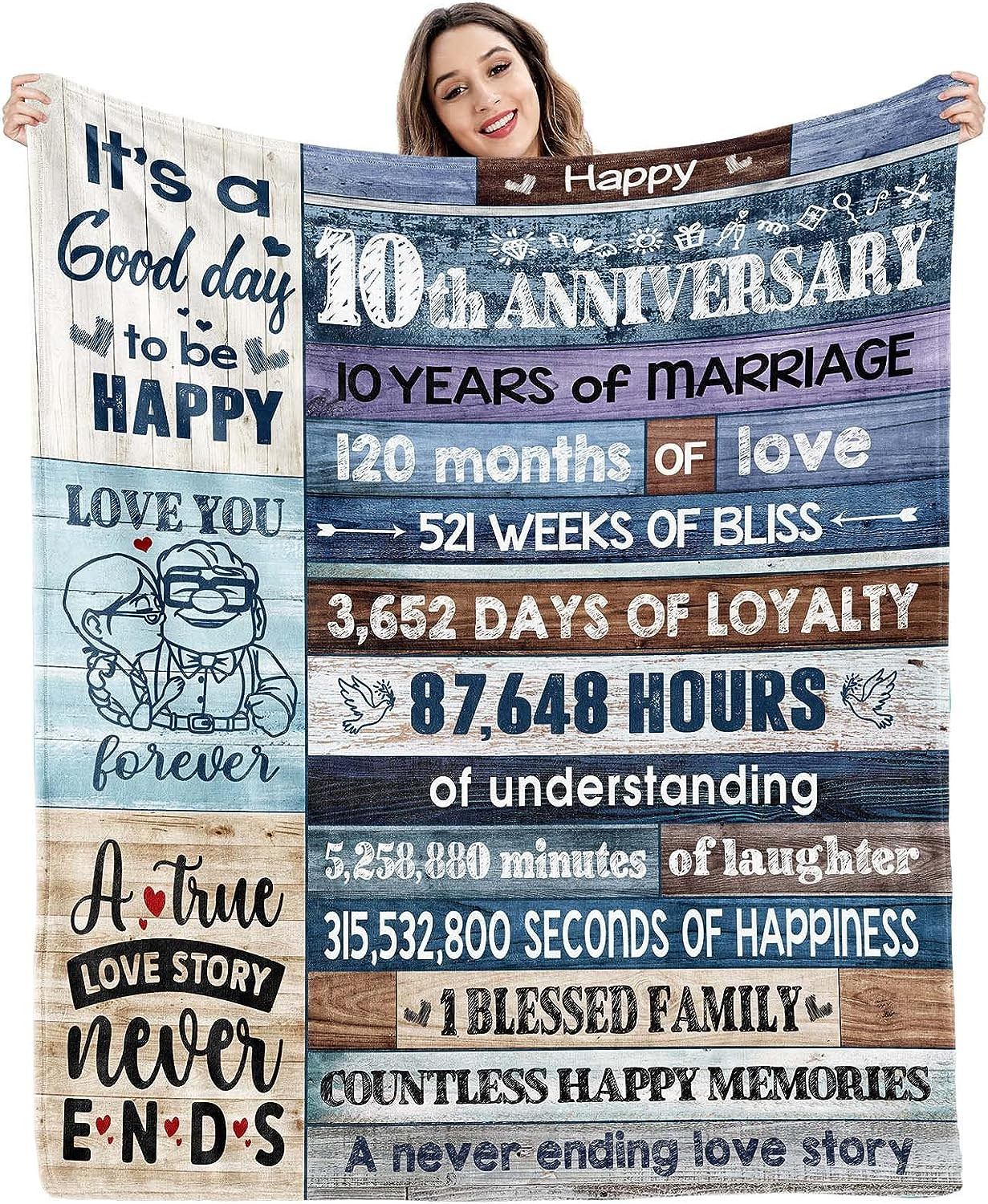 10Th Anniversary Blanket For Wife, 10 Year Anniversary Wedding Gifts For Him, Her Couples,10Th Anniversary Wedding Gifts