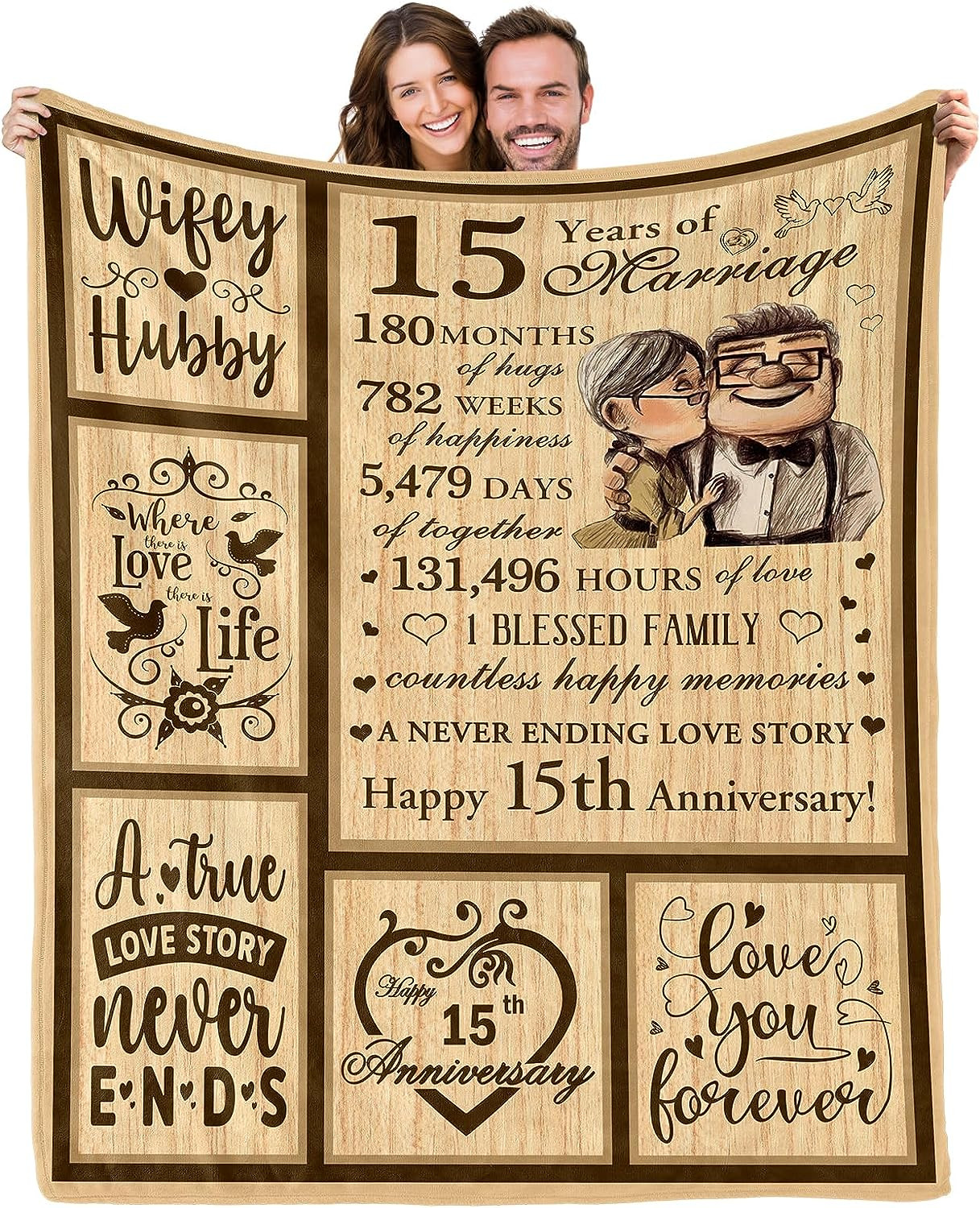 15Th Anniversary Blanket, Gifts Wedding For 15Th Crystal, 15Th Wedding 15 Years Of Marriage, Gift For Men Wife Husband
