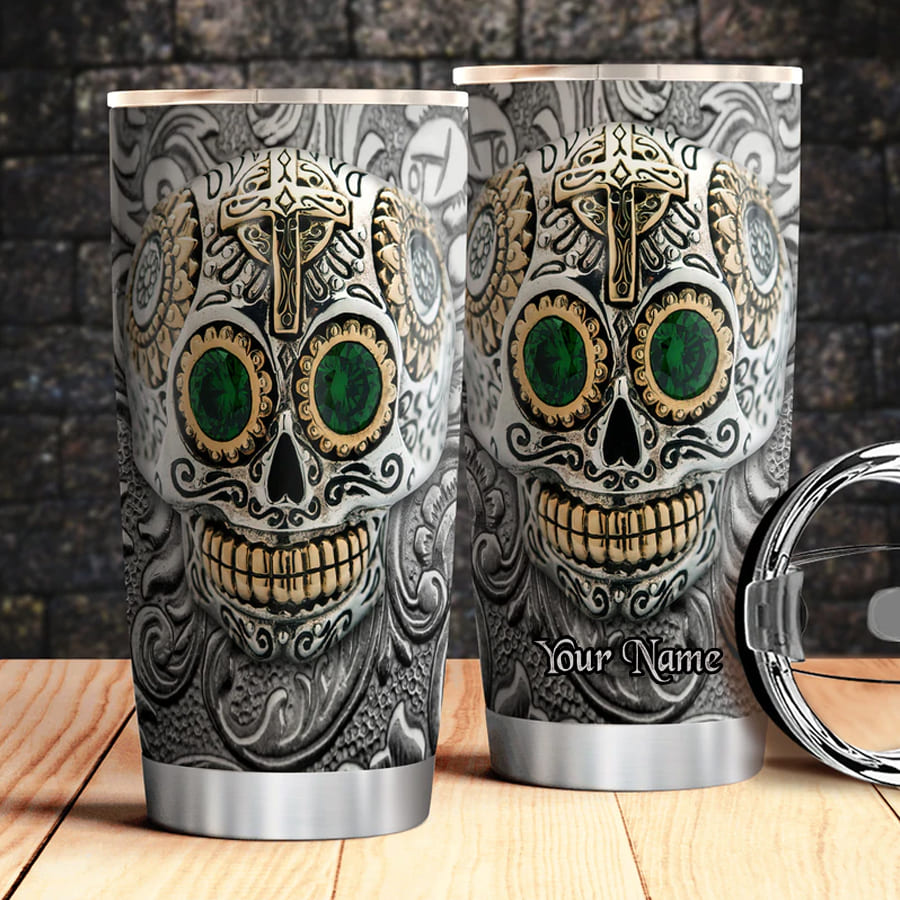 20Oz Tumbler Skull Mandala Stainless Steel Tumbler, Skull Tumbler For Men, Gift For Skull Lovers