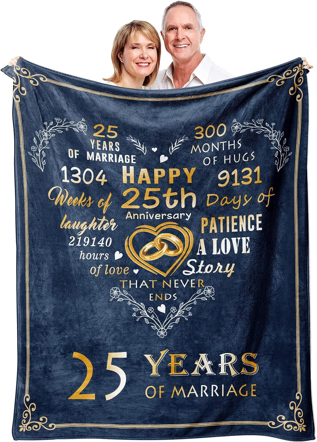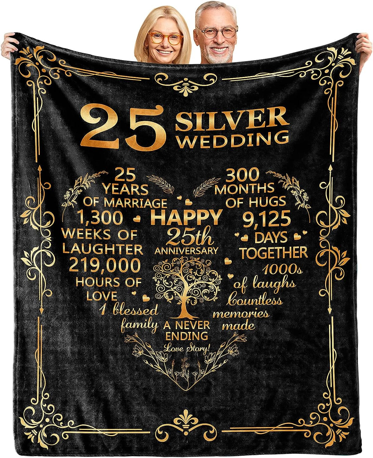 25Th Anniversary Wedding Blanket For Couple, 25Th Anniversary Romantic Gifts For Husband Wife – Gifts For 25Th Anniversary