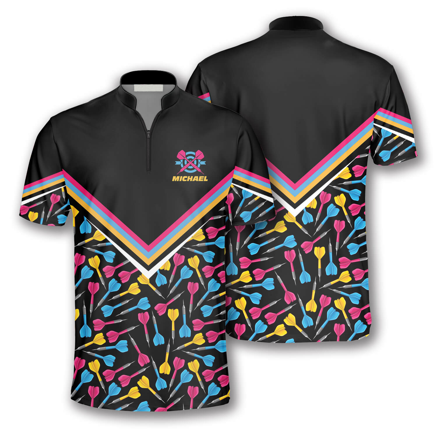 3D All Over Print Dart Arrow Pattern Navy Custom Darts Jerseys For Men, Personalized Name Dart Shirt