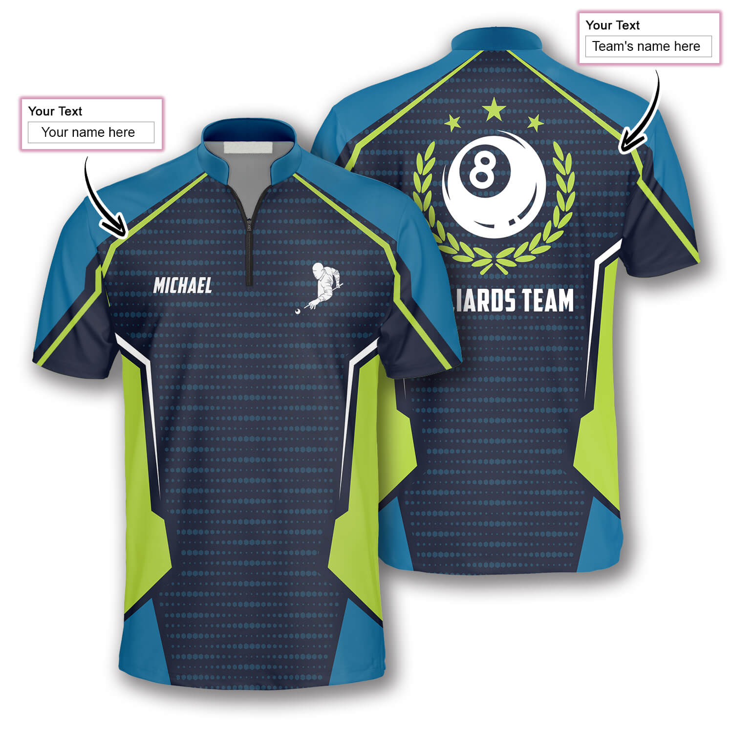 3D All Over Print Green Blue Dot Lines Custom Billiard Jerseys For Men, Personalized Billiard Shirt