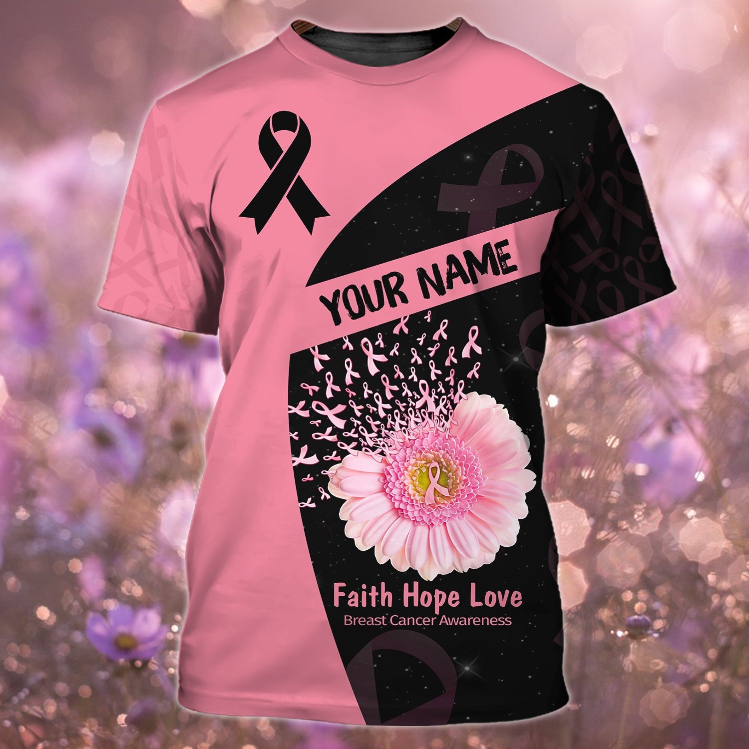 3D Breast Cancer- Faith Hope Love Personalized Name 3D T Shirt