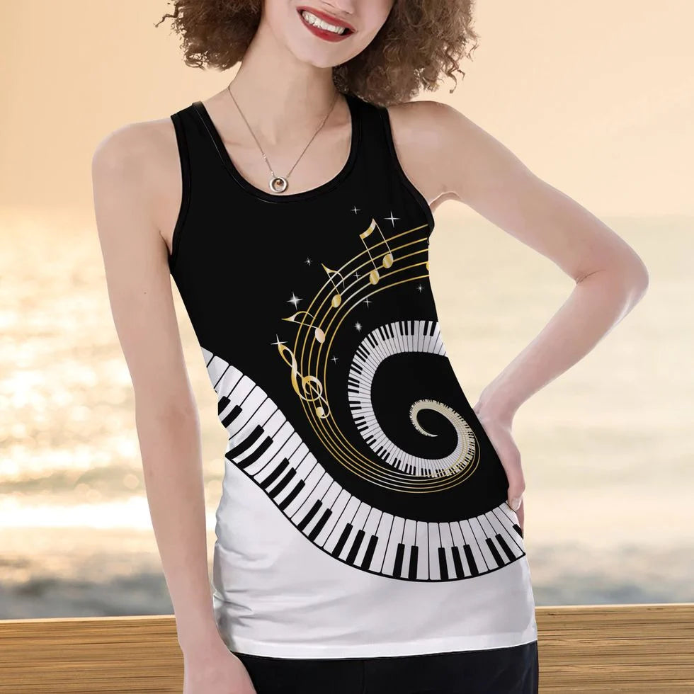 3D Full Print Hollow Tank Tops And Leggings With Piano For Women My Wife, Yoga Piano Tank Set For Summer