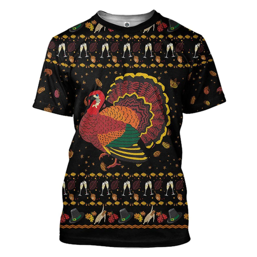3D Party Turkey Thanksgiving Tshirt Apparel
