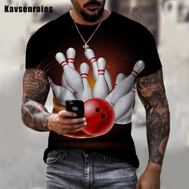 3D Sports Bowling Printed T-Shirt Casual Clothing Unisex Fashion Cozy Short Sleeve Bowling Club Shirts Oversized Hip Hop Tees