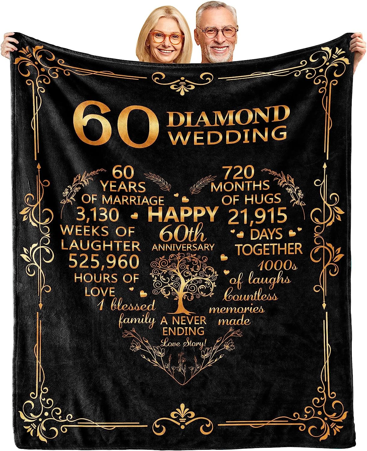60Th Anniversary Blanket Gifts, Wedding For 60Th Diamond 60Th Anniversary, 60 Years Of Marriage Gift For Couple Parents Grandparents