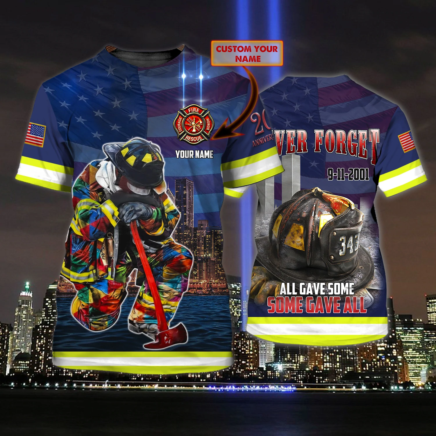 9-11 – Never Forget – Firefighter – Personalized Name 3D Tshirt
