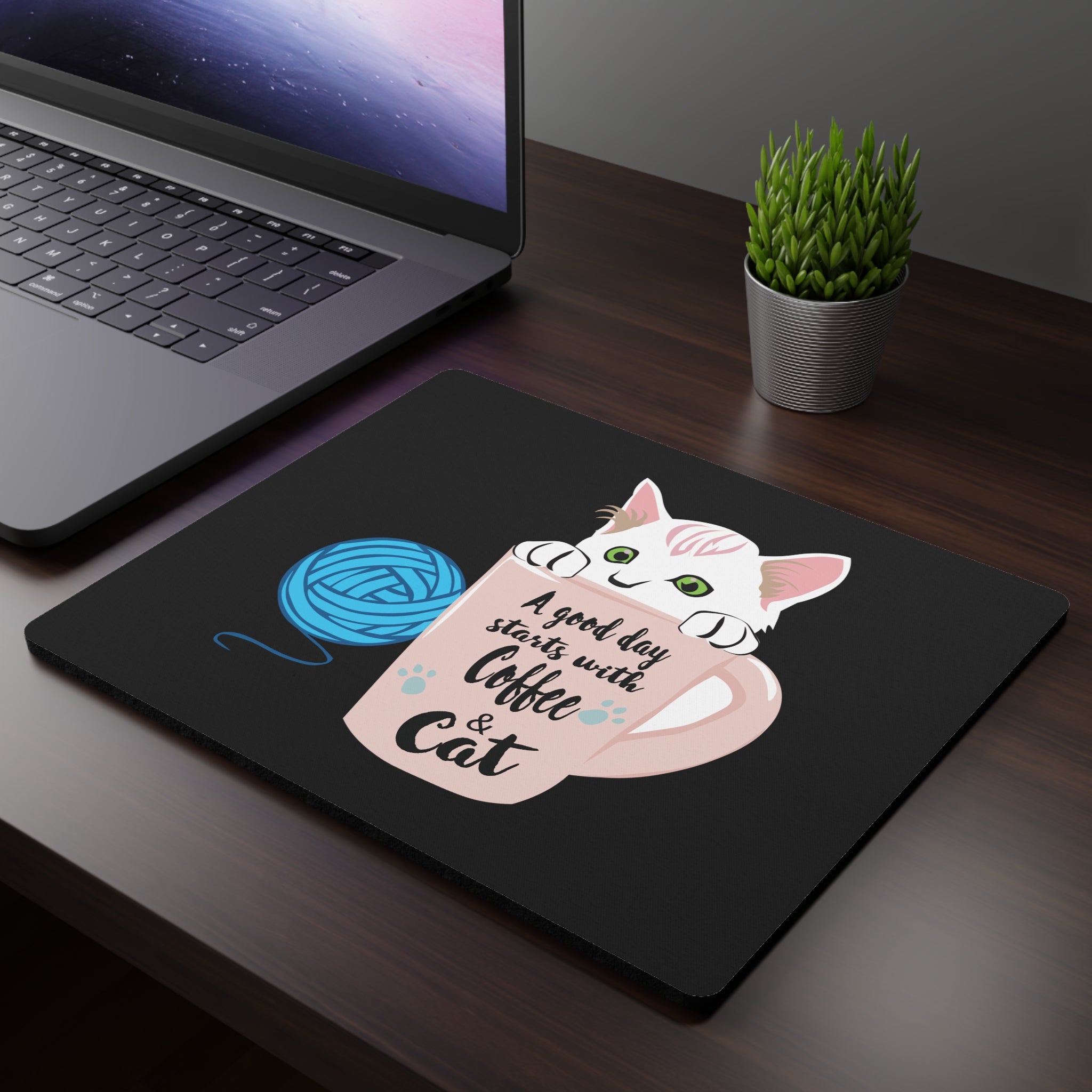 A Good Day Starts With Coffee & Cat Lovely Animal Lover Cute T Shirt Rectangular Mouse Pad