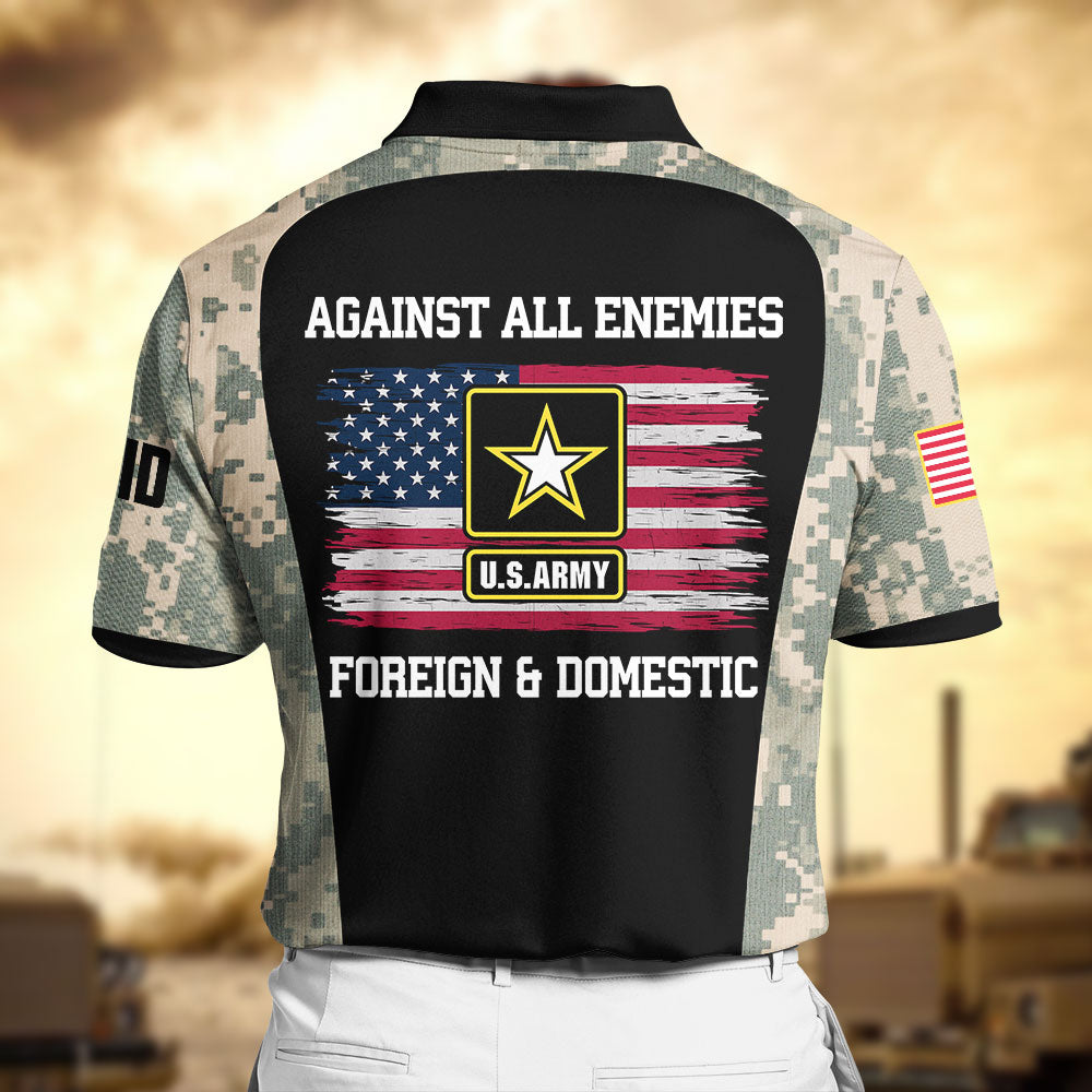Against All Enemies Foreign & Domestic Personalized Veteran Polo Shirt Gift For Him