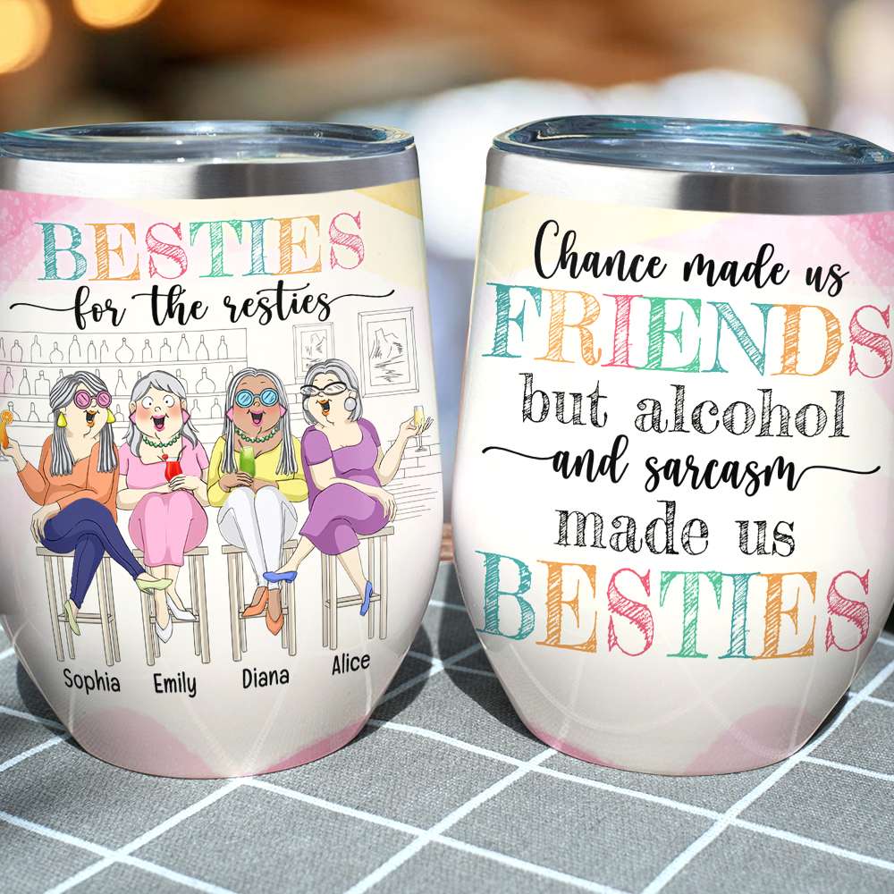 Alcohol And Sarcasm Made Us Besties – Personalized Bestie Wine Tumbler