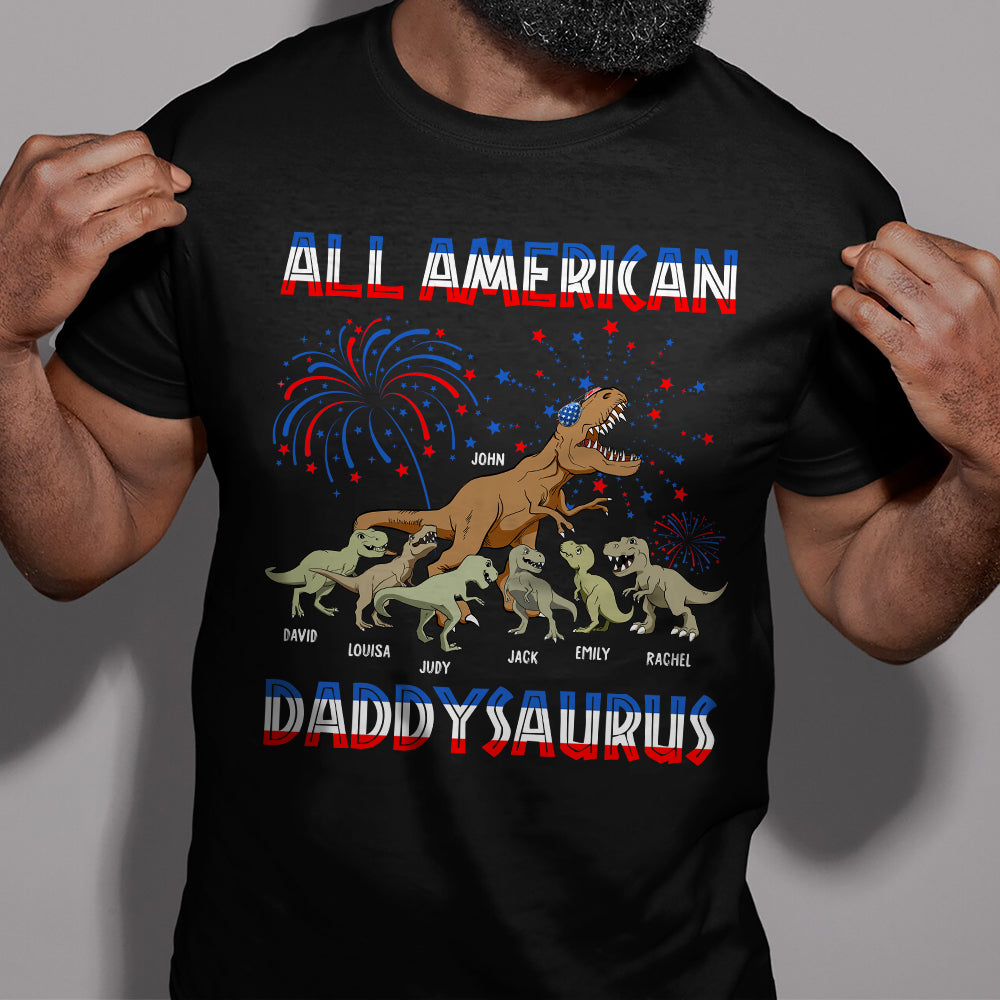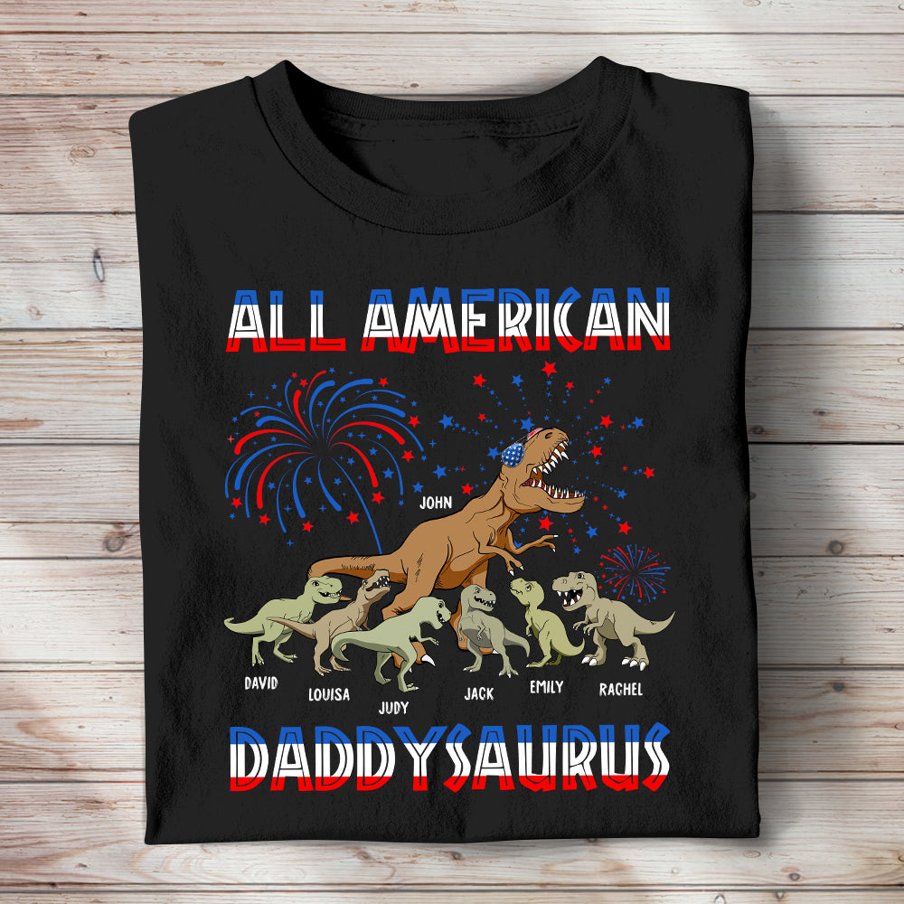 All American Daddysaurus Personalized Independence Day Shirt. Gift For Family