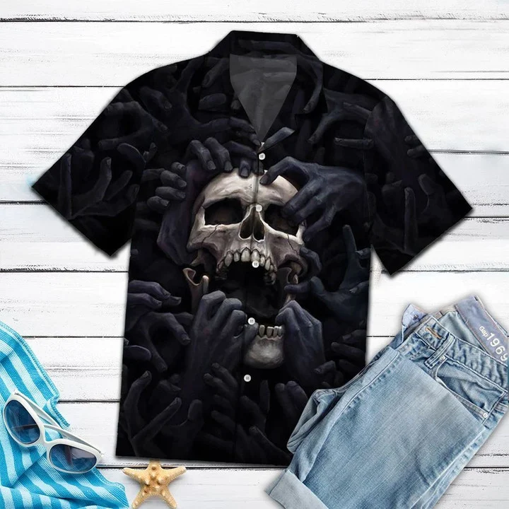 Amazing Hand Cover Skull Day Of The Dead Pattern Hawaiian Shirt
