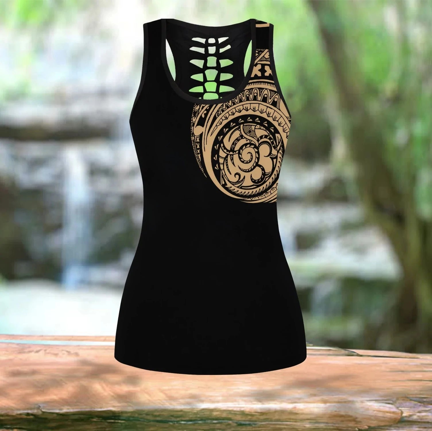 Amazing Polynesian Traditional Tattoo Deluxe Leggings Tank Top For Yoga Lovers, Woman Tank Set