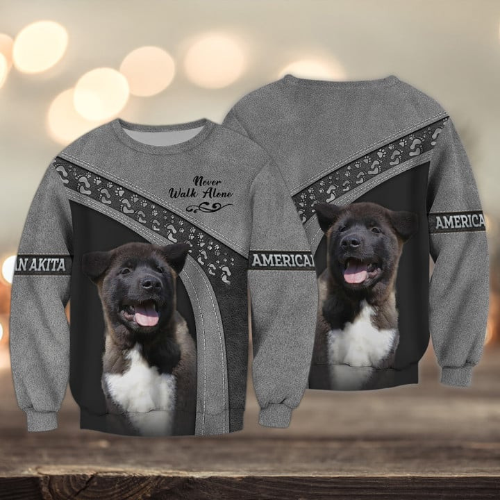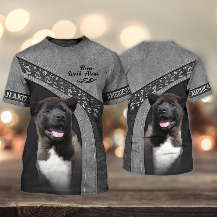 American Akita Love Never Walk Alone 3D Full Print Shirts