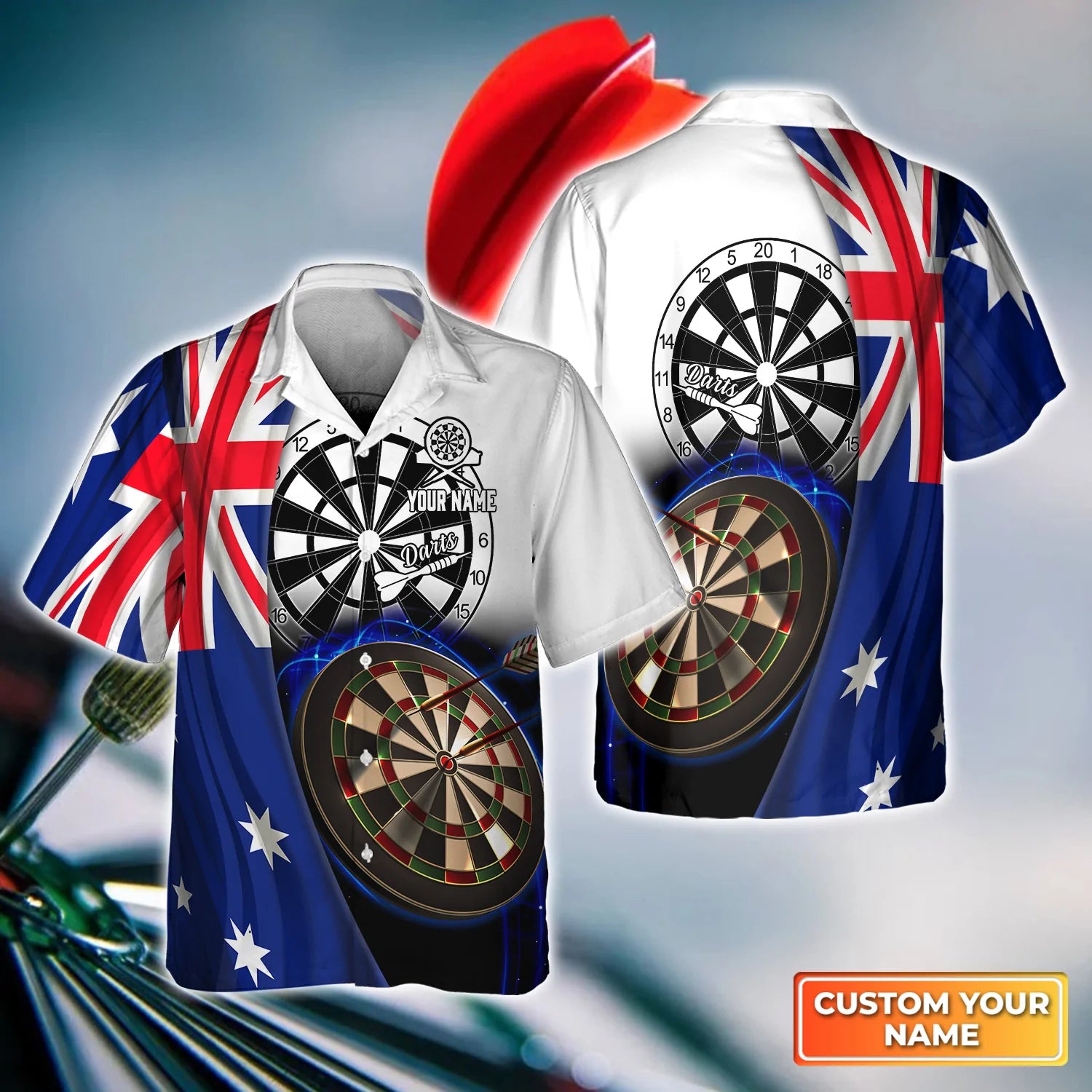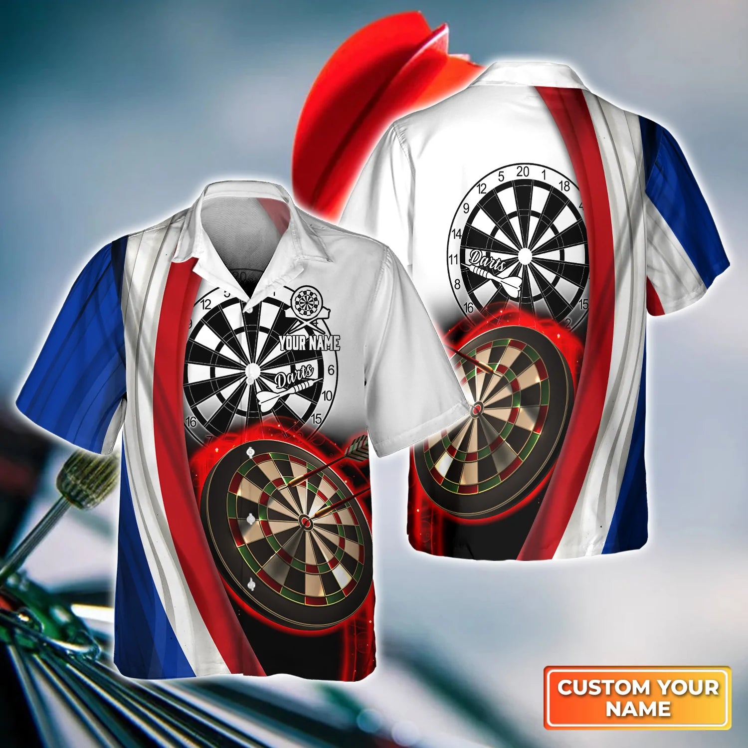 American Flag Dartboart Personalized Name 3D Hawaiian Shirt For Darts Player
