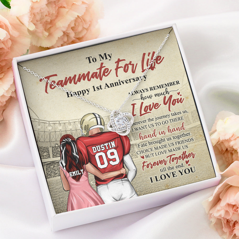 American Football Couple Always Remember How Much I Love You – Personalized Love Knot Necklace – Gift For Him/Her – Couple Shoulder To Shoulder