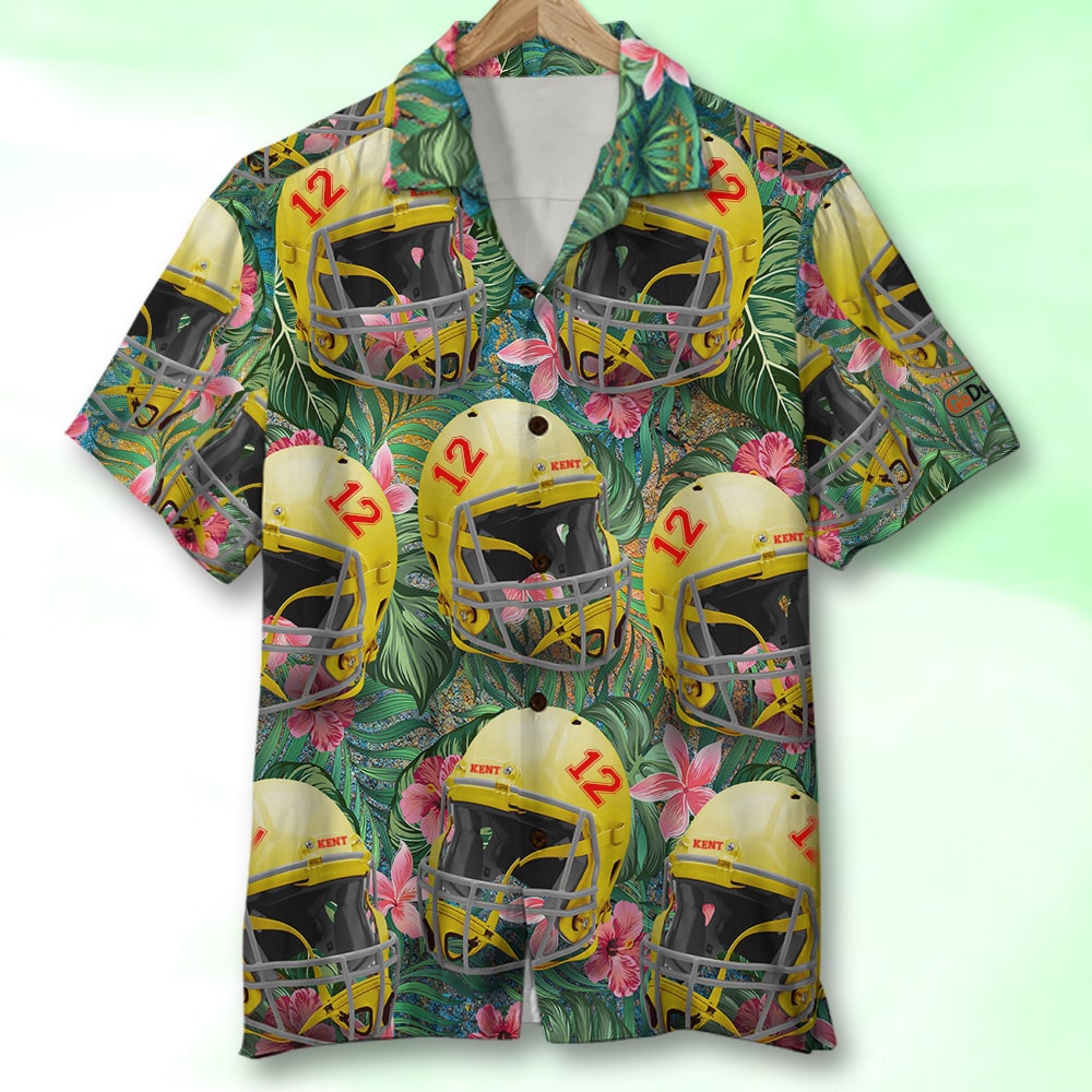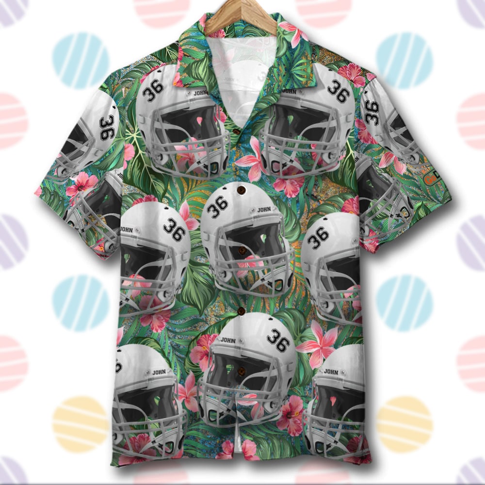 American Football Helmet Seamless Pattern, Personalized Hawaiian Shirt, Gifts For American Football Fans