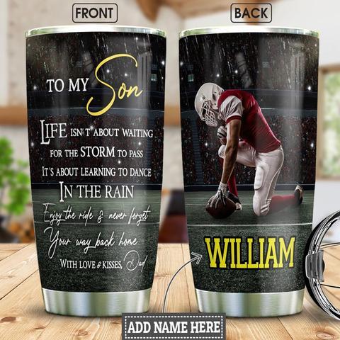 American Football To My Son Stainless Steel Tumbler, Personalized Tumblers, Football Tumbler , Custom Tumblers