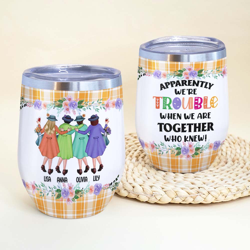 Apparently We’Re Trouble When We’Re Together Who Knew, Personalized Old Friends Wine Tumbler
