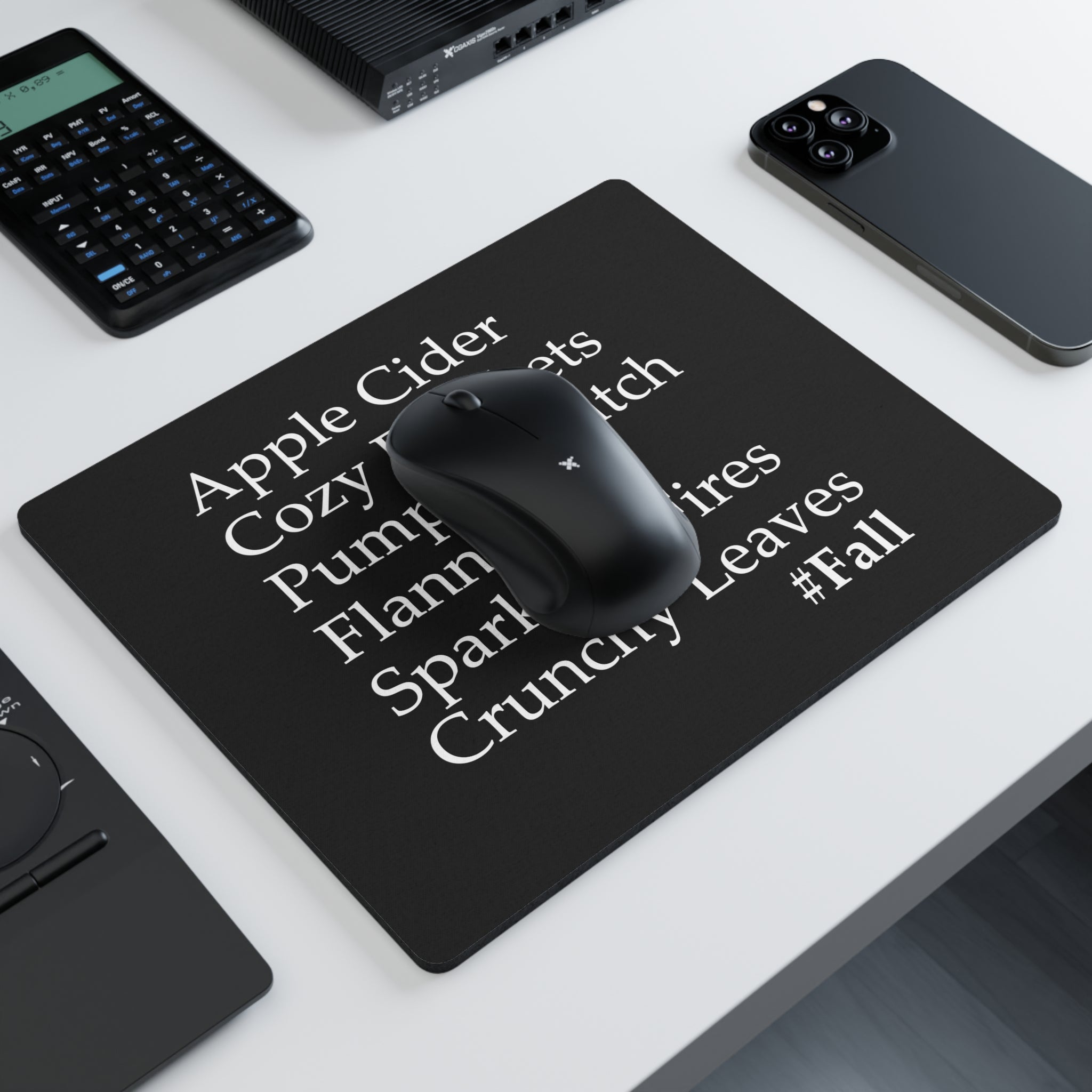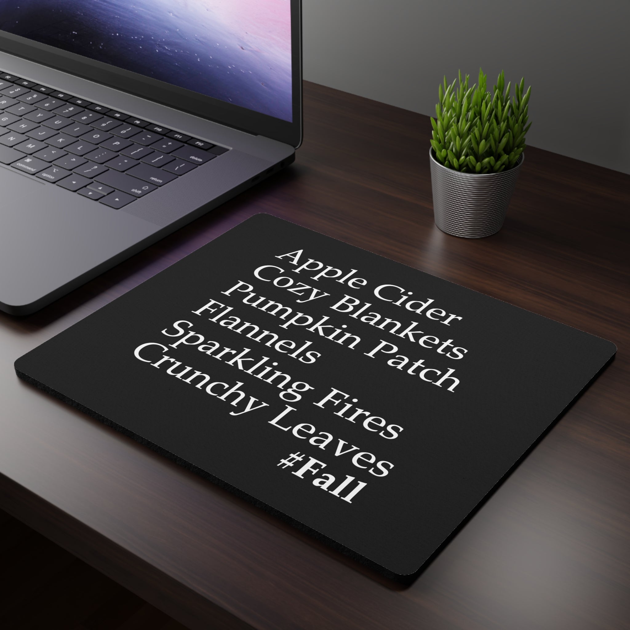Apple Cider Cozy Blankets Pumpkin Patch Flannels Sparkling Fires Crunchy Leaves Sweater Weather Fall Tshirt | Autumn Shirt | Fall T-Shirt Rectangular Mouse Pad