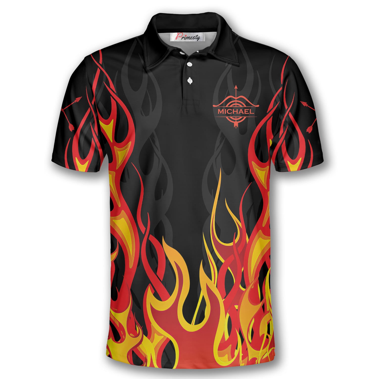 Archery 3D All Over Printed Shirt, Hell Fire Custom Archery Shirts For Men, Custom Archery Polo Shirts