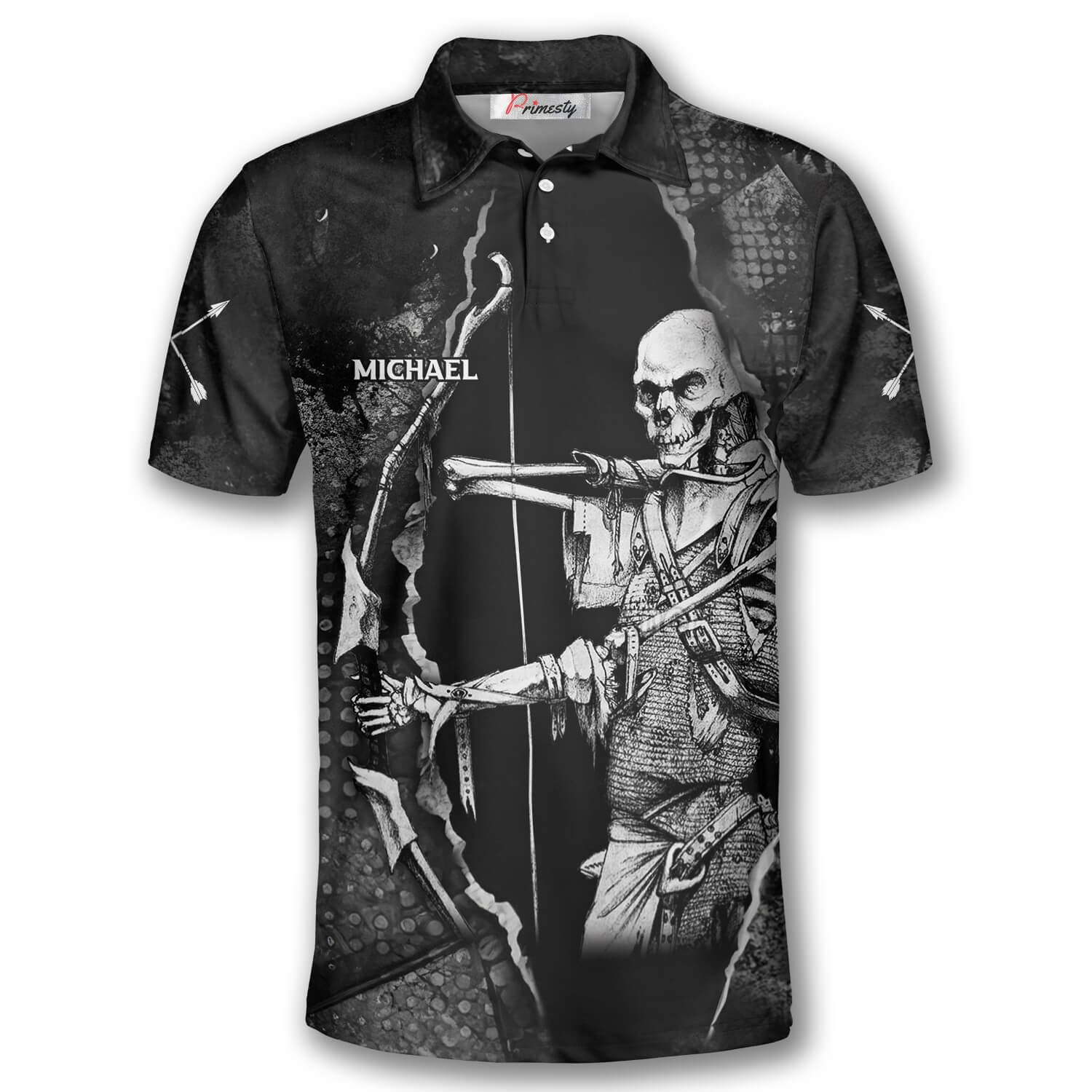 Archery 3D All Over Printed Shirt, Hell Gate Skull Archery Shirts For Men, Custom Archery Polo Shirts