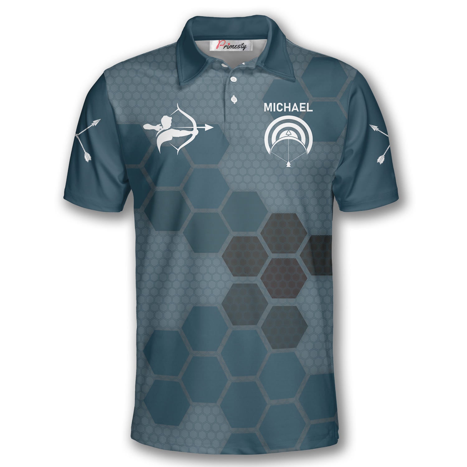 Archery 3D All Over Printed Shirt, Hive Navy Custom Archery Shirts For Men And Women, Custom Archery Polo Shirts