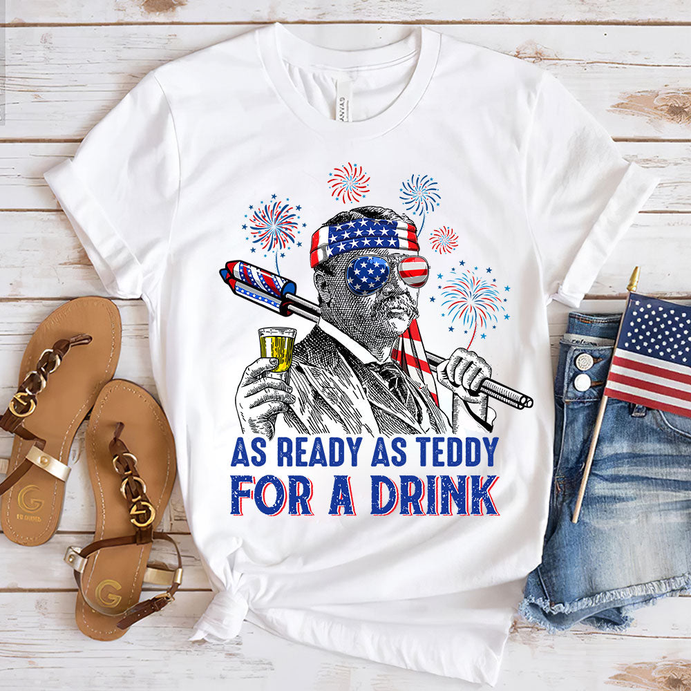 As Ready As Teddy For A Drink 4Th Of July Shirt Gift For Him