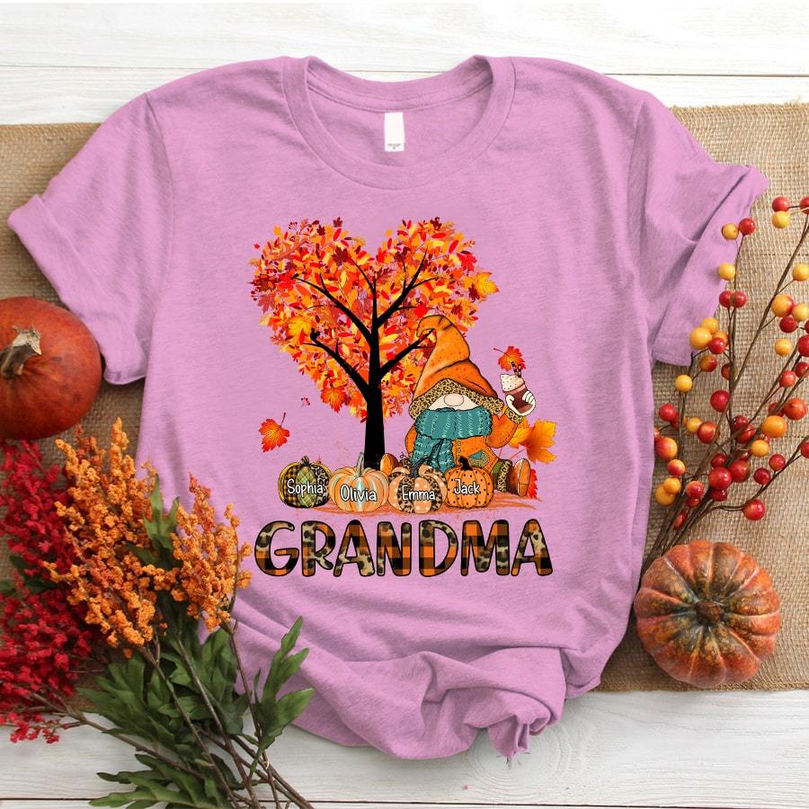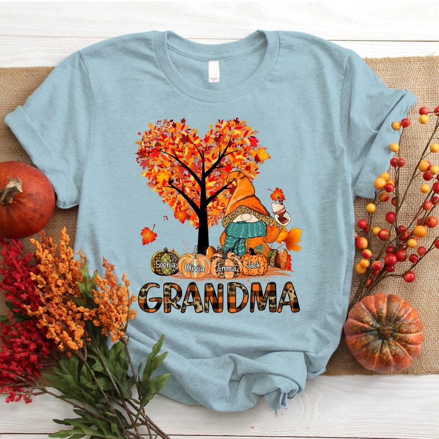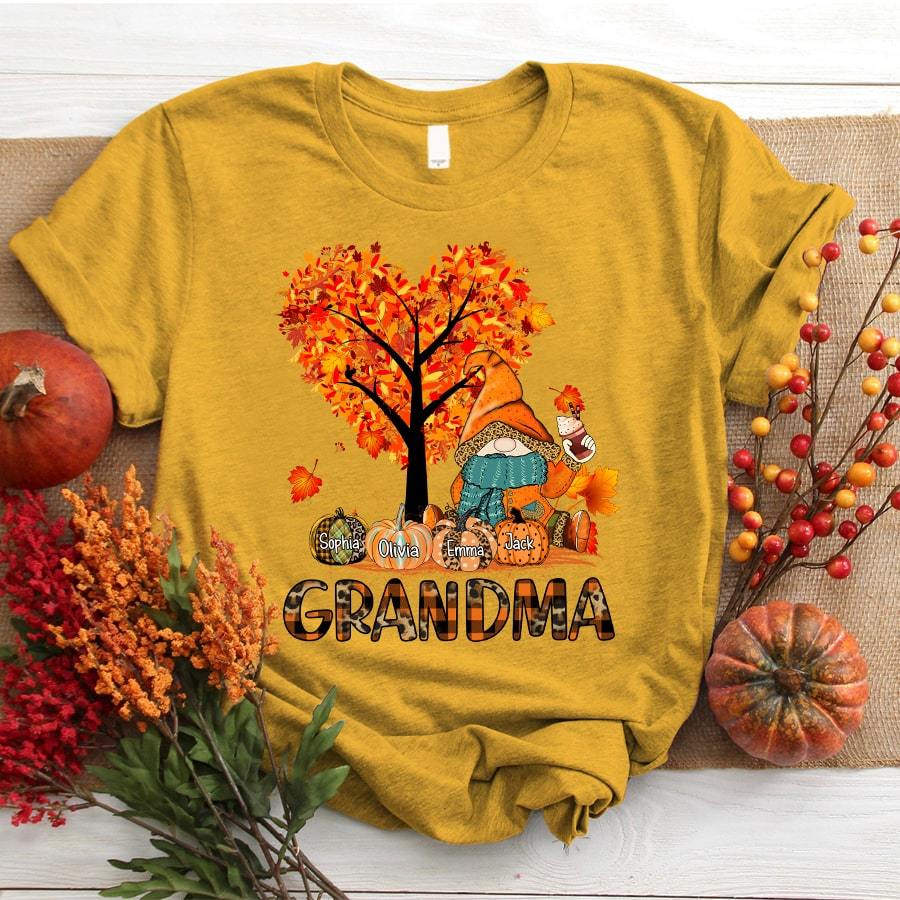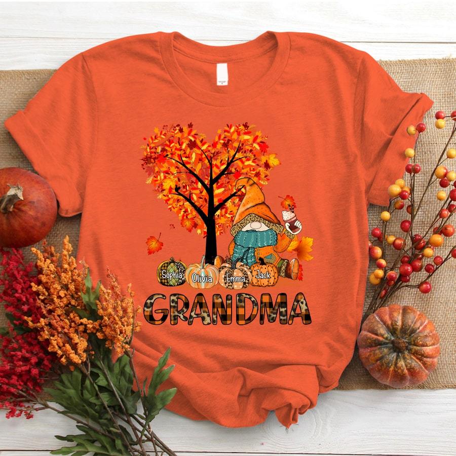 Autumn Shirt Grandma Gnome Tree Heart Personalized Pumpkin Shirt Gift