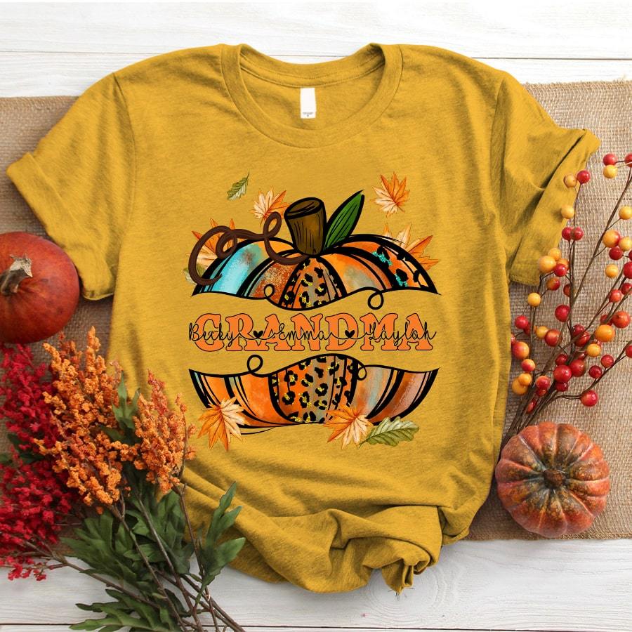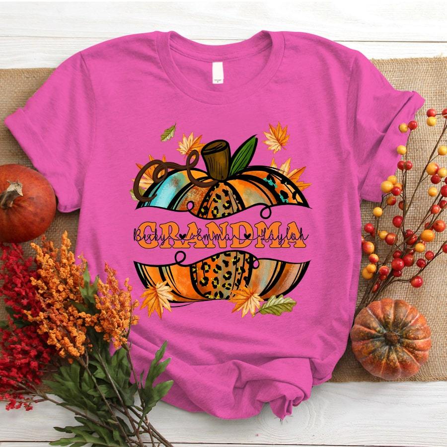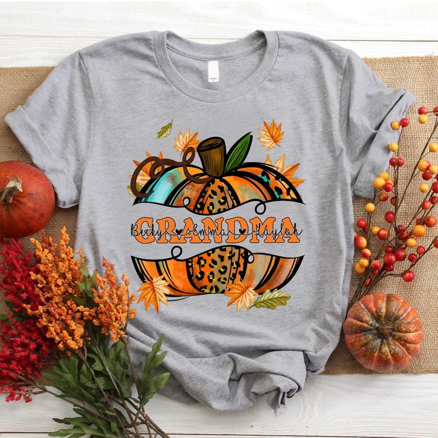 Autumn Shirt Grandma Pumpkin Personalized With Grandkids Shirt Gift