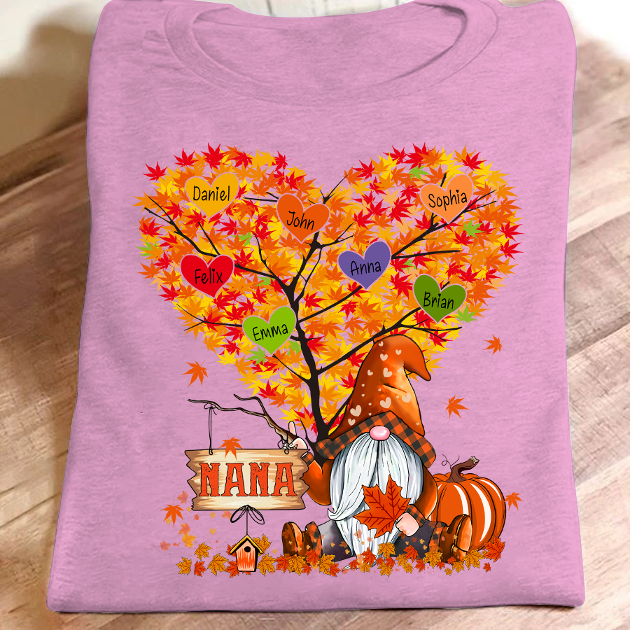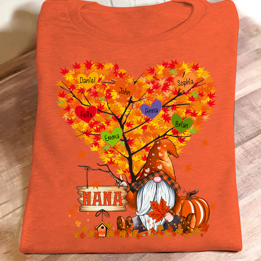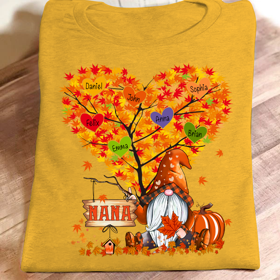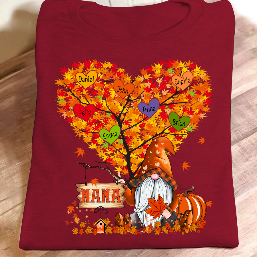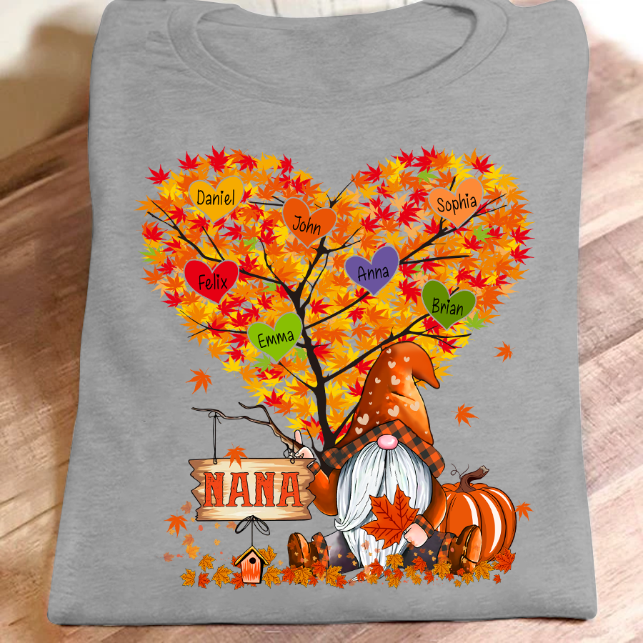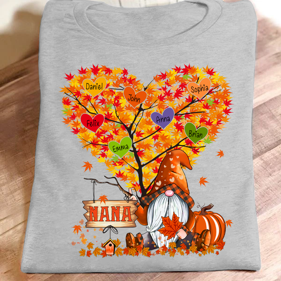 Autumn Shirts Personalized Nana Gnome Tree Heart With Grandkids Shirt Gift