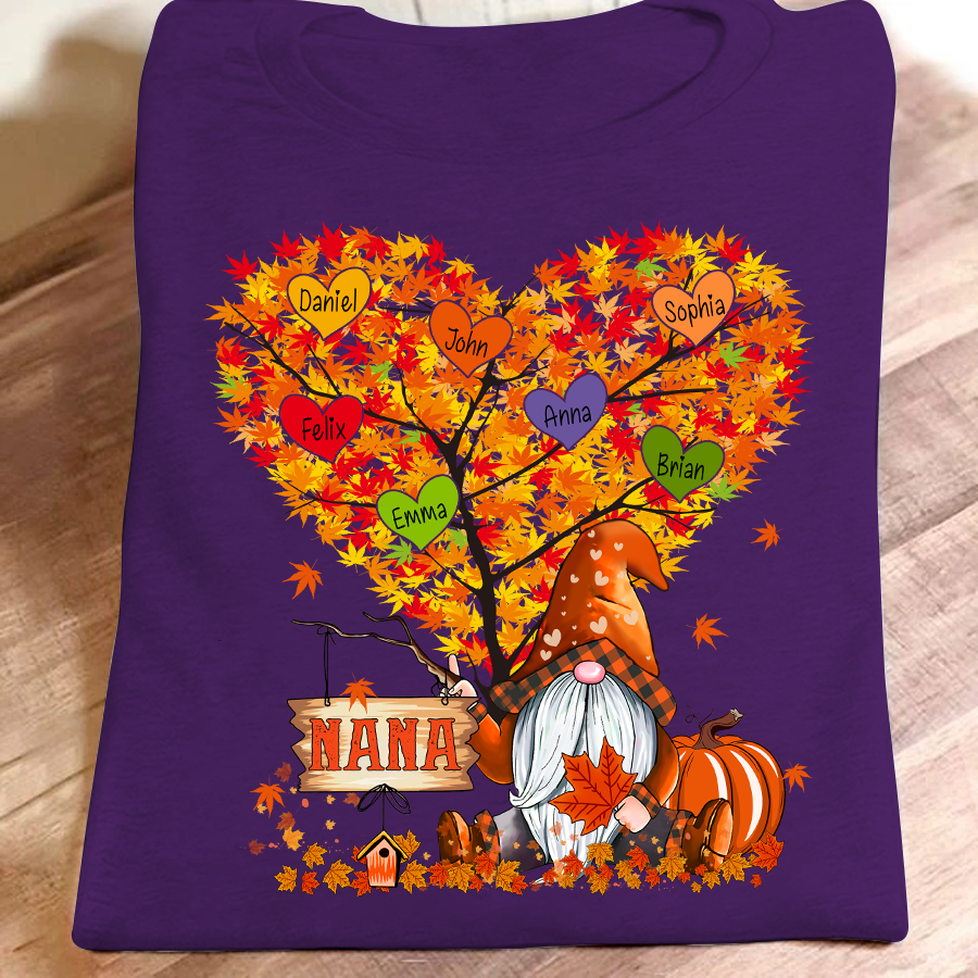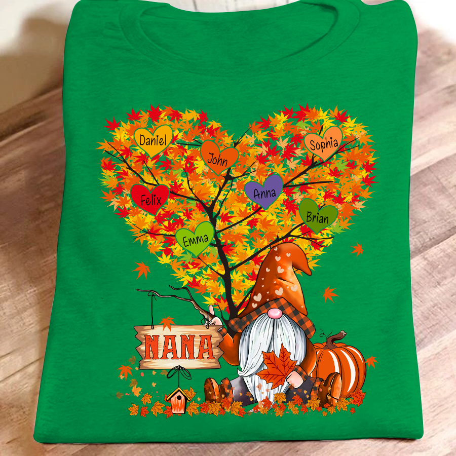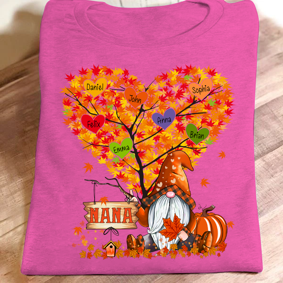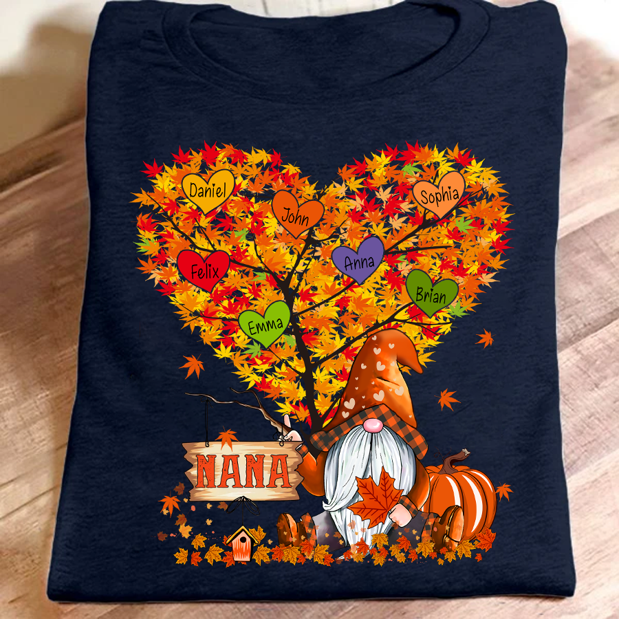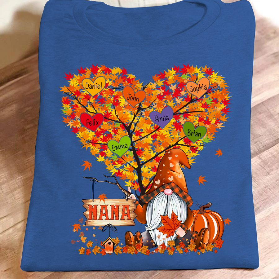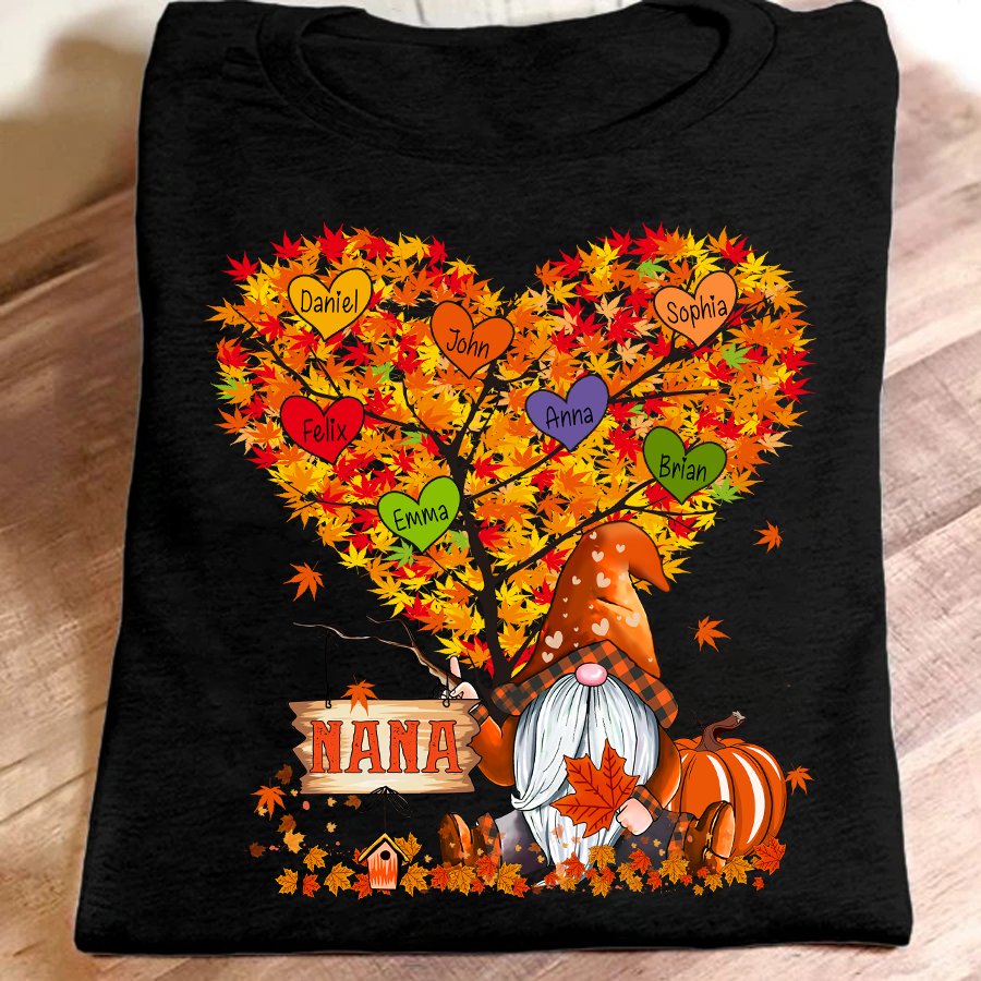Autumn Shirts Personalized Nana Gnome Tree Heart With Grandkids Shirt Gift