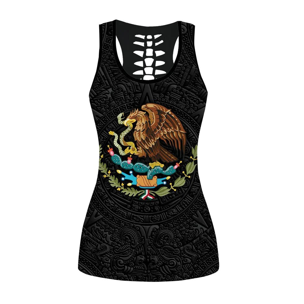 Aztec Mexico Combo Set Tank Top & Leggings For Women, 3D Full Printed Hollow Tank Top Leggings For Yoga Training
