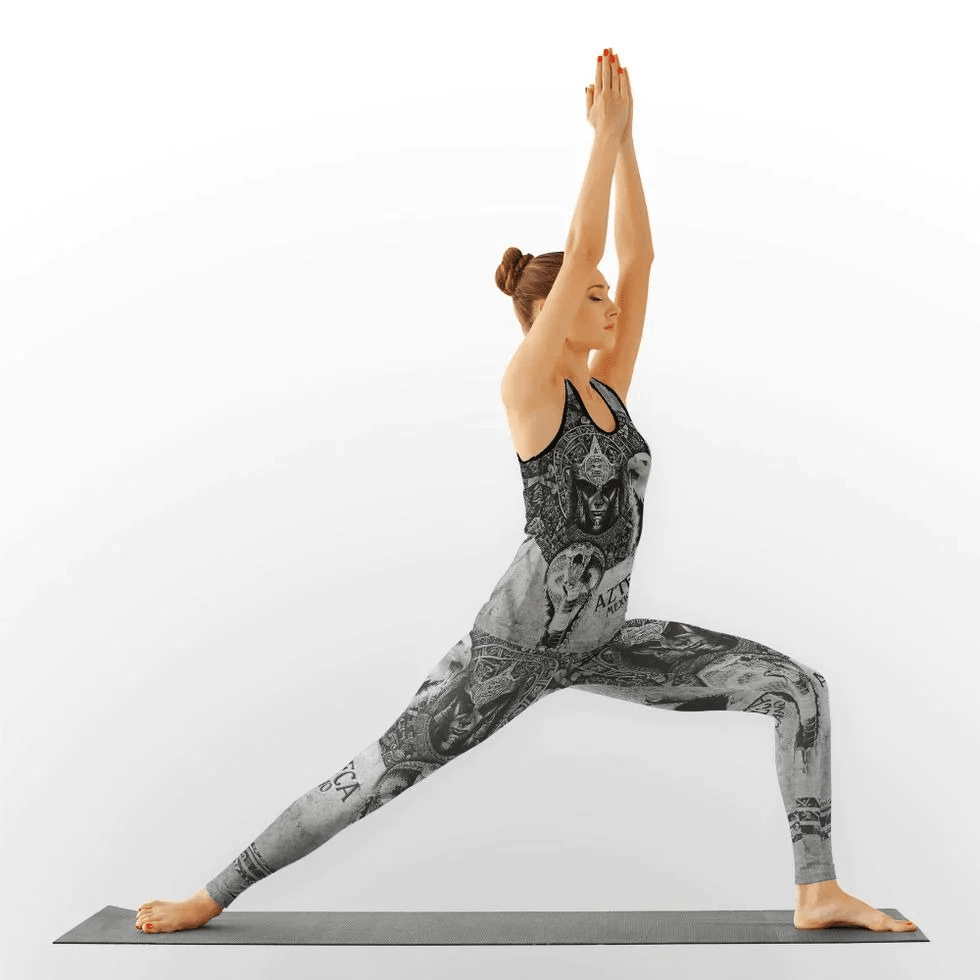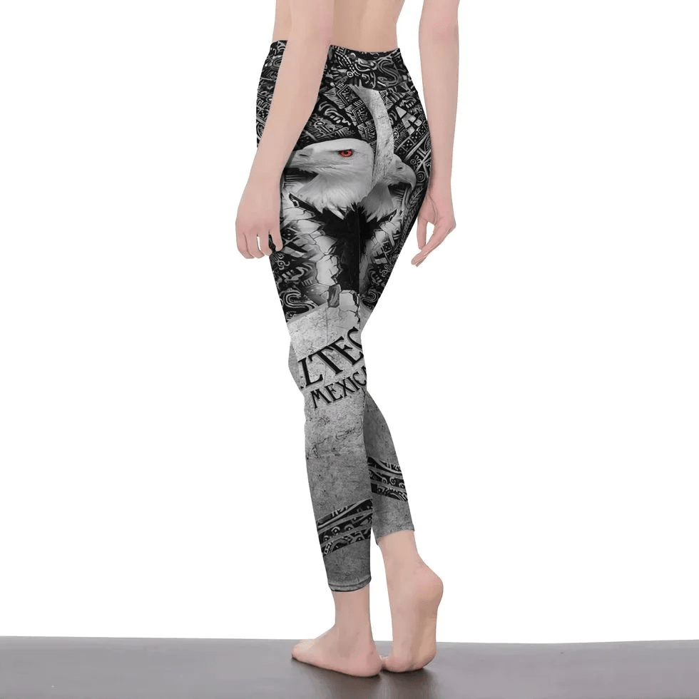 Azteca Mexicano Eagle Snake Black Wihte Set Tank Top Legging, Aztec Women’S Hollow Tank Set For Yoga Walking Training