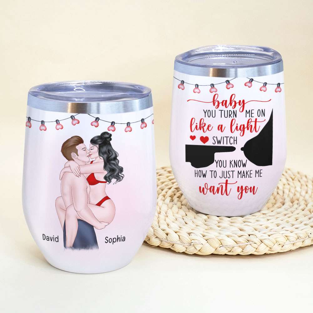 Baby You Turn Me On Like A Light Switch, Naughty Couple Wine Tumbler Gift
