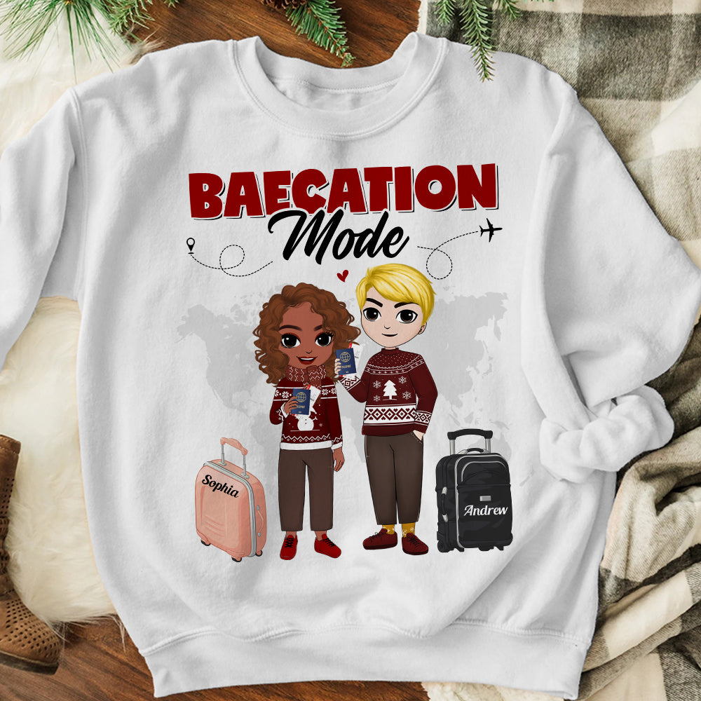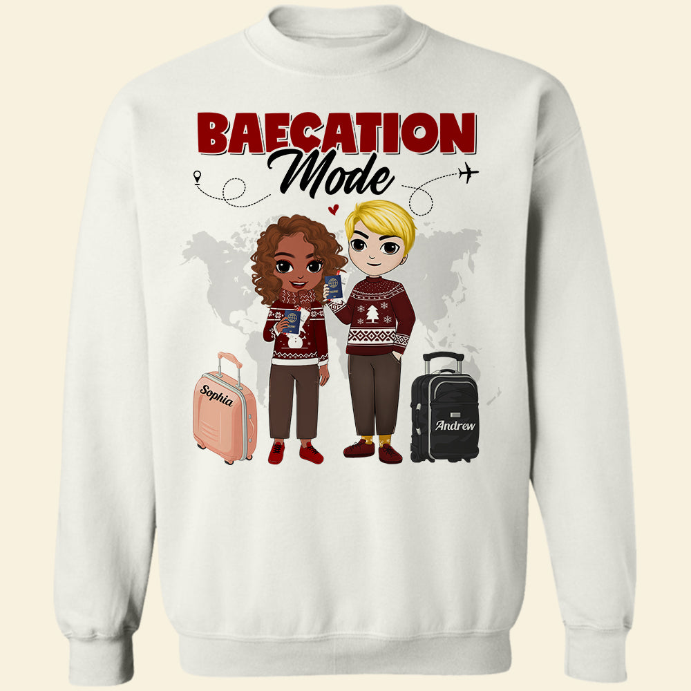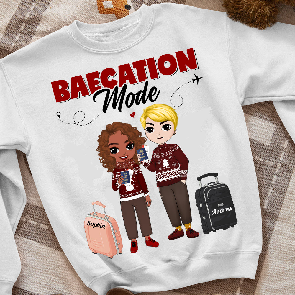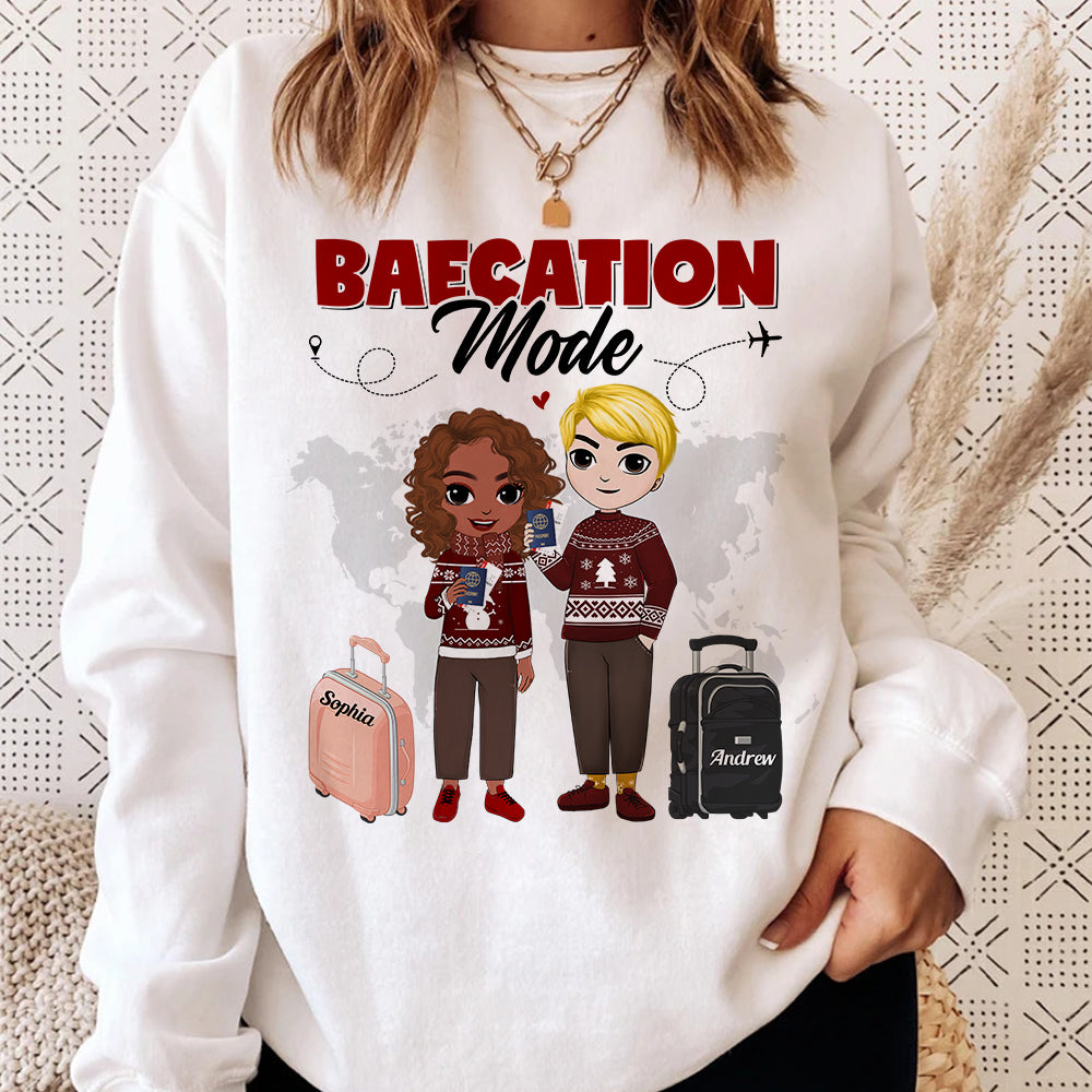 Baecation Mode Couples Travel Sweater, Personalized Couple Shirt