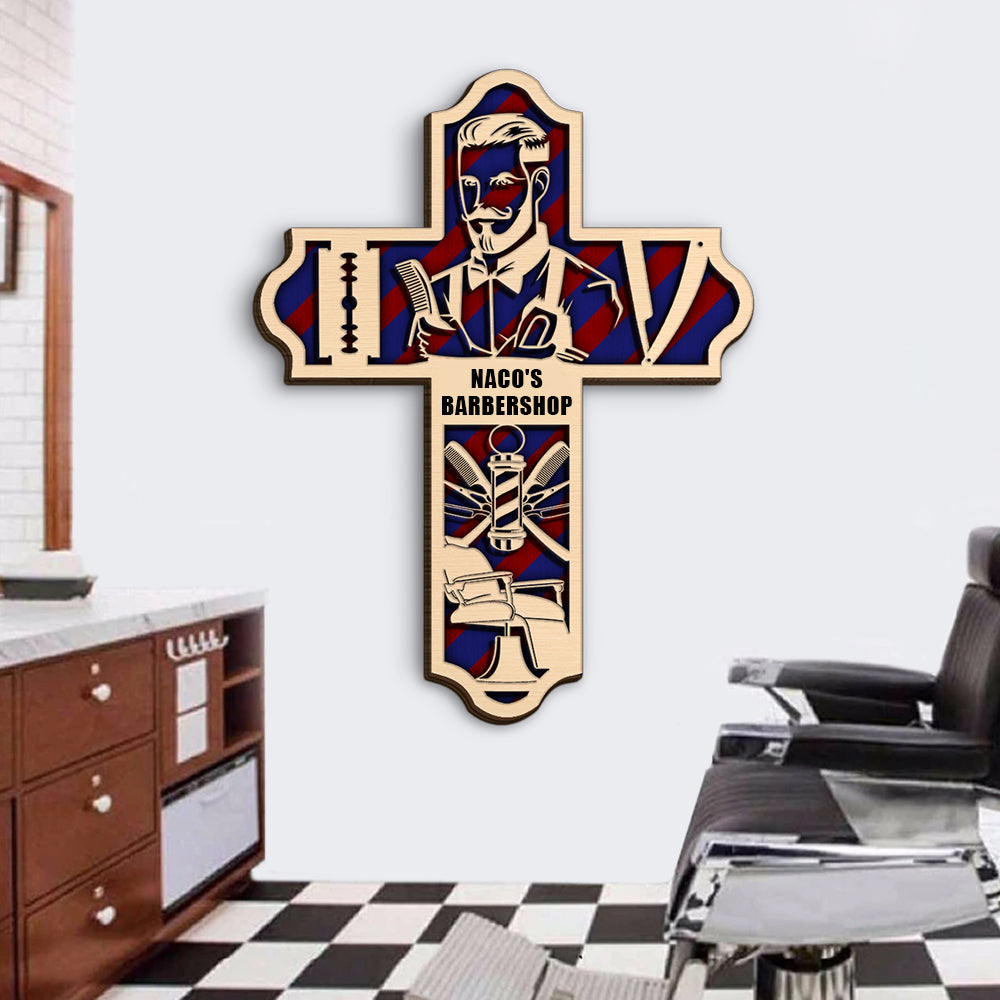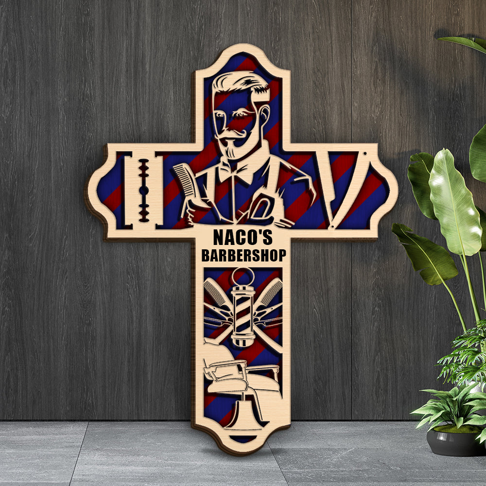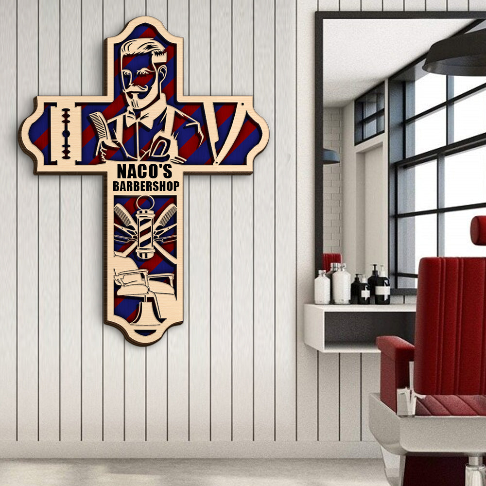 Barber With Equipment – Personalized 3D 2-Layered Wood Art – Gift For Barber