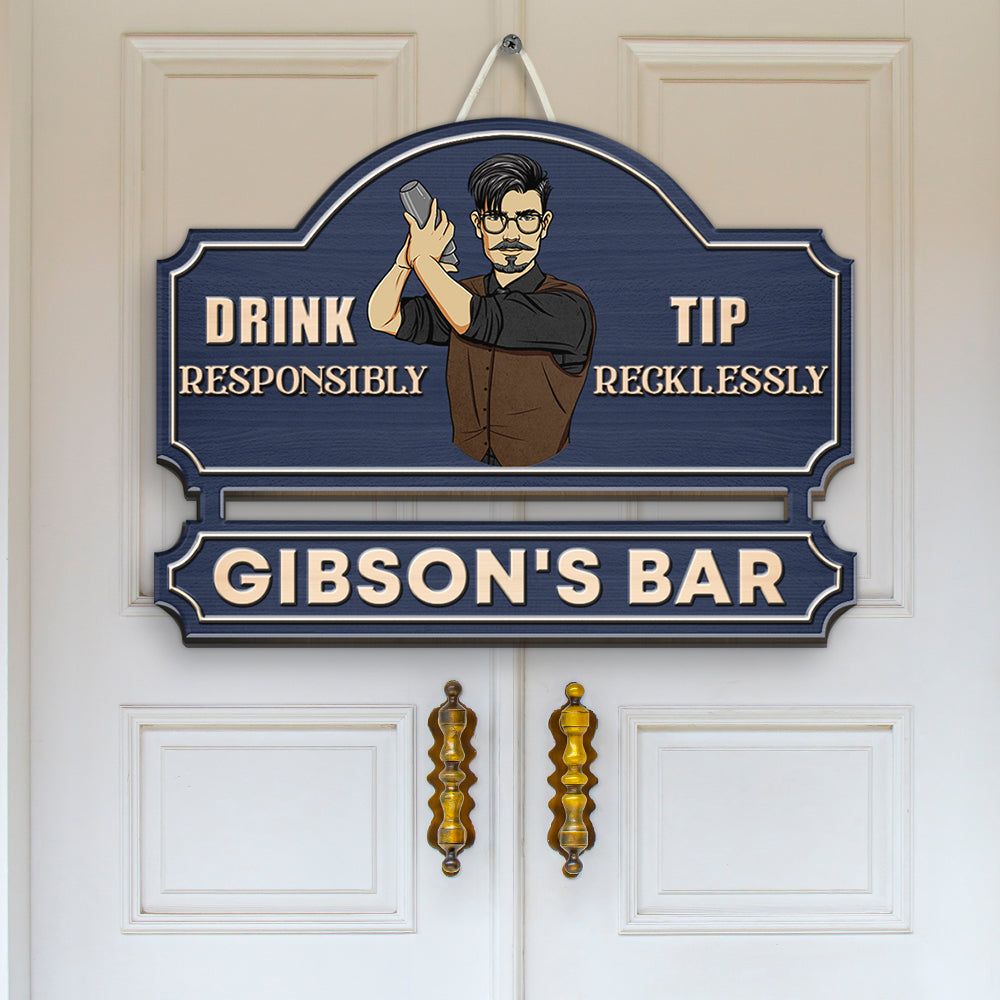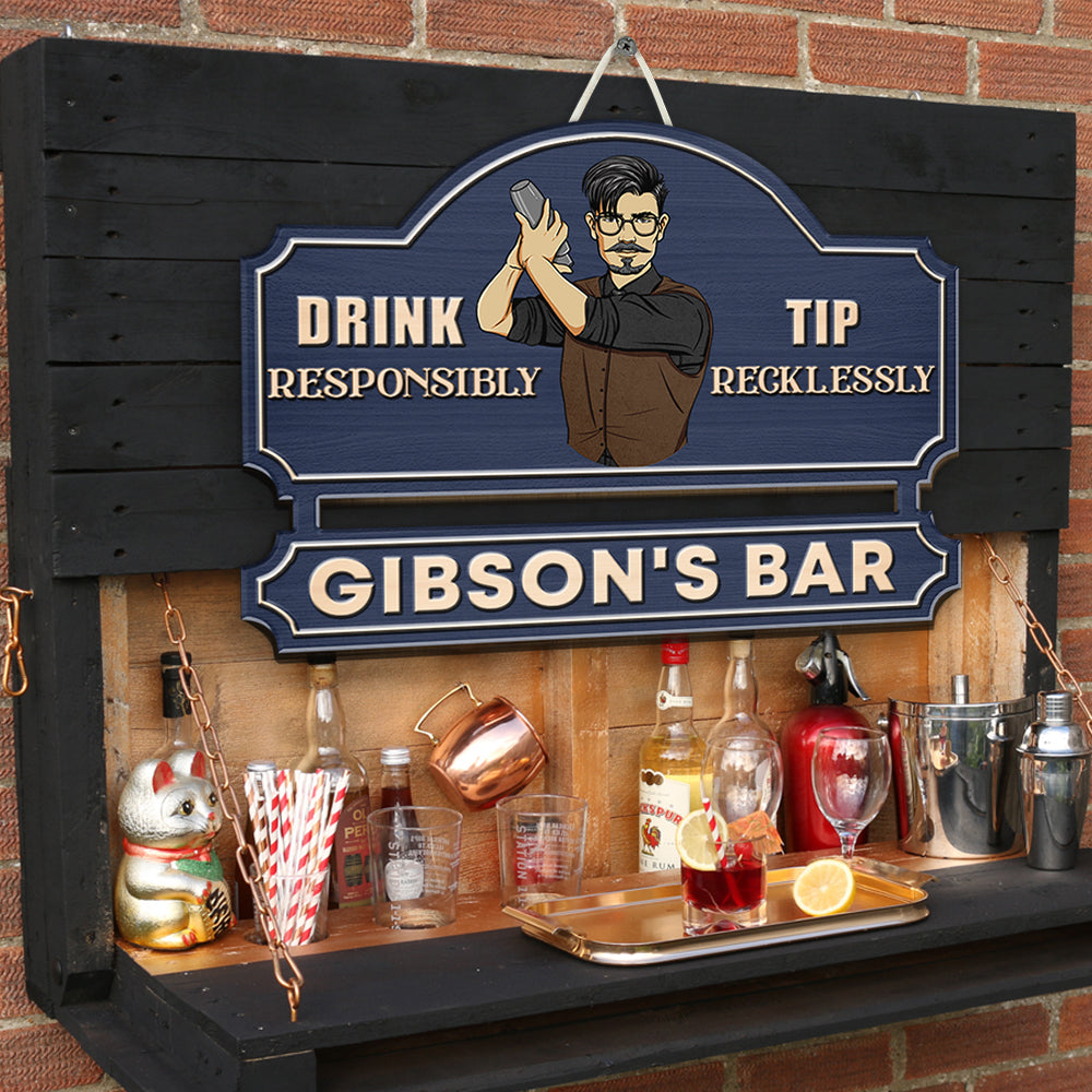 Bartender Drink Responsibly Tip Recklessly – Personalized 3D 2-Layered Wood Art – Gift For Bartenders