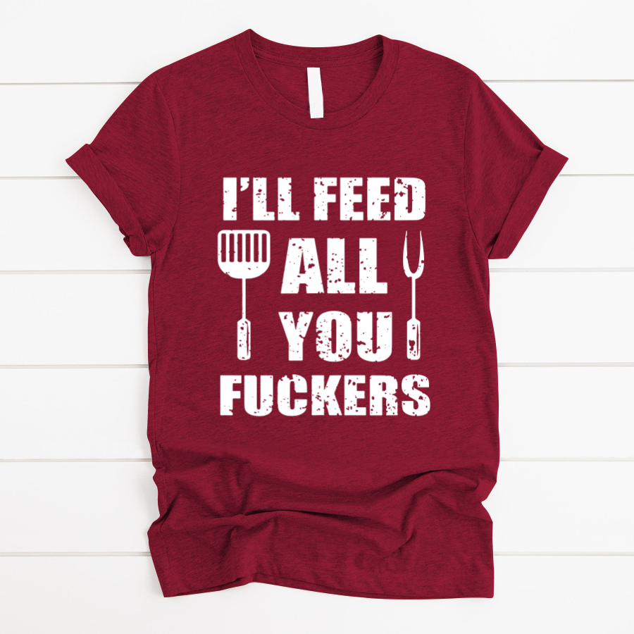 Bbq Dad Joke I’Ll Feed All You Fuckers Barbecue Cookout Chef T Shirt