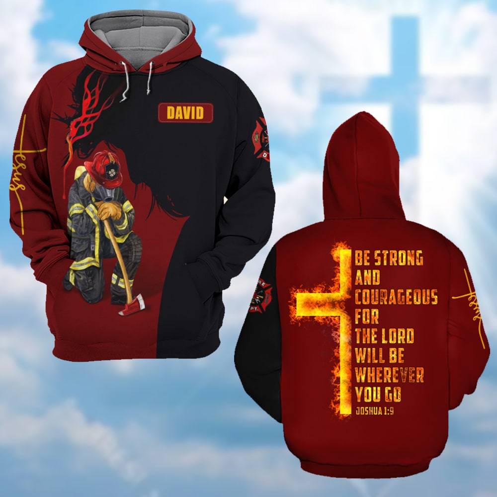 Be Strong And Courageous, Personalized All Over Print Shirts, Gifts For Firefighters
