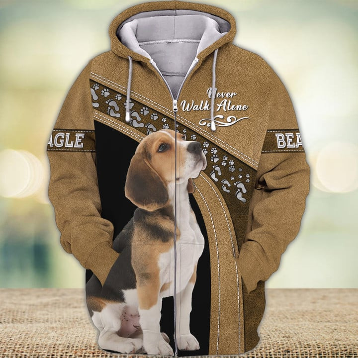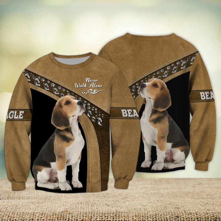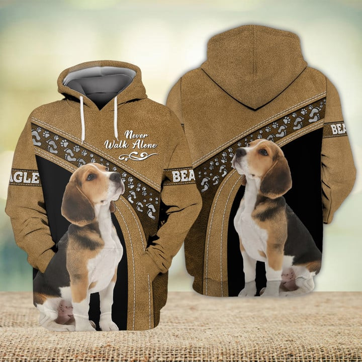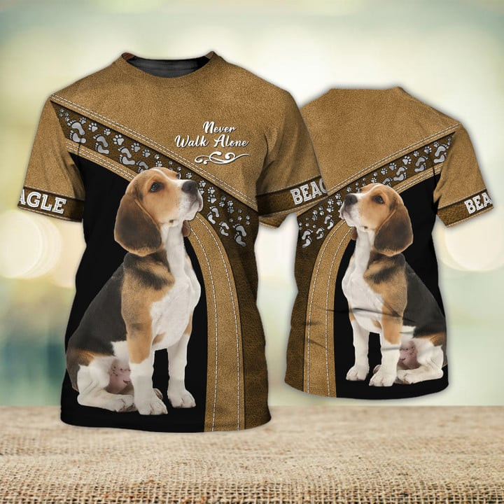 Beagle Lover Never Walk Alone 3D Full Print Shirts, Memorial Gift For Dog Owner, Dog Lover Shirt
