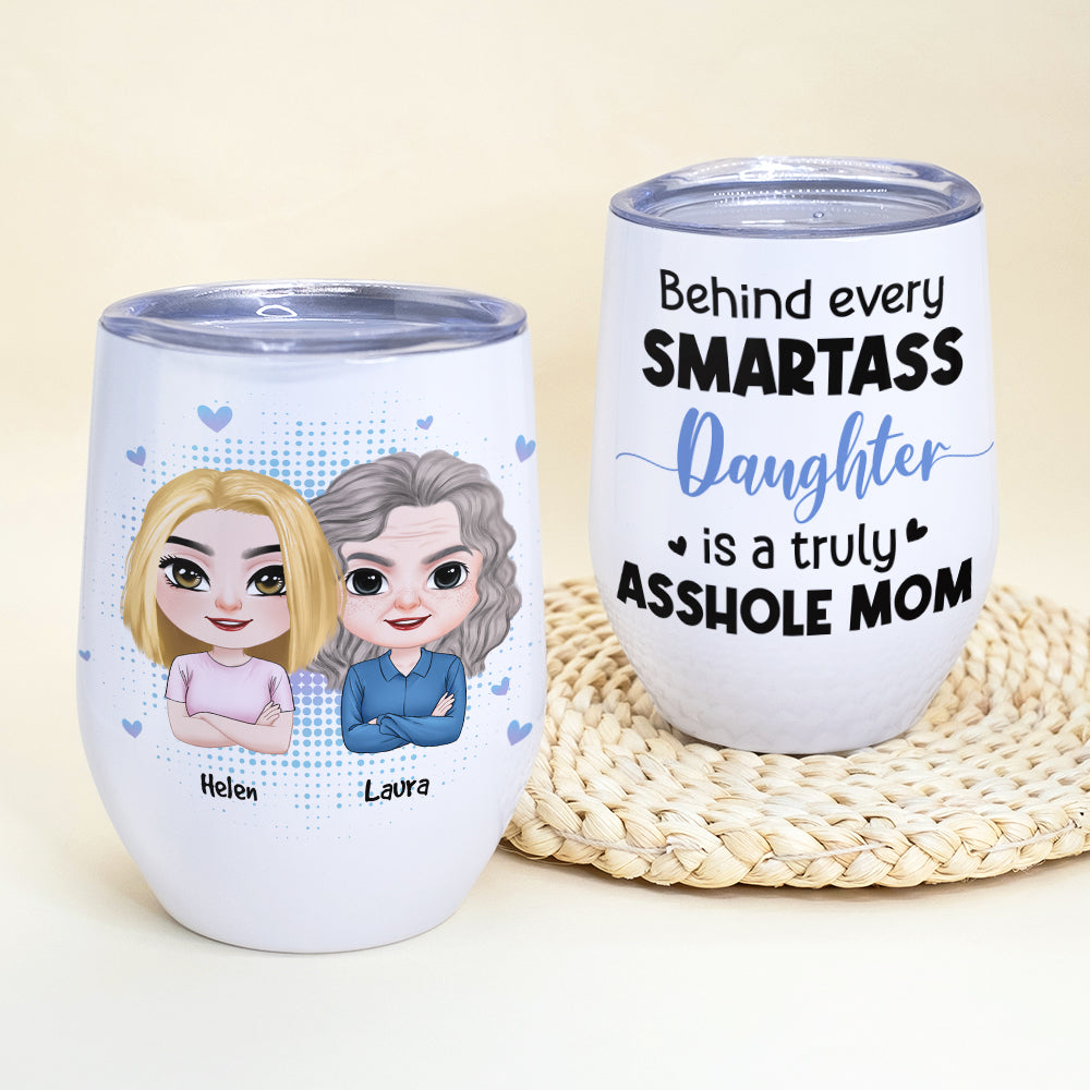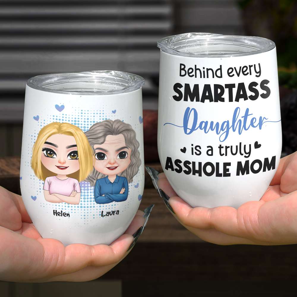 Behind Every Smart Daughter, Personalized Wine Tumbler, Gift For Mom