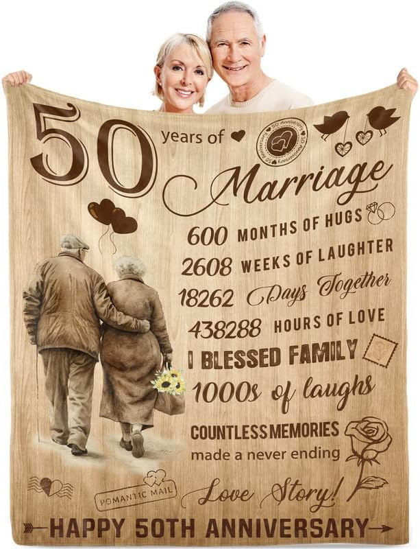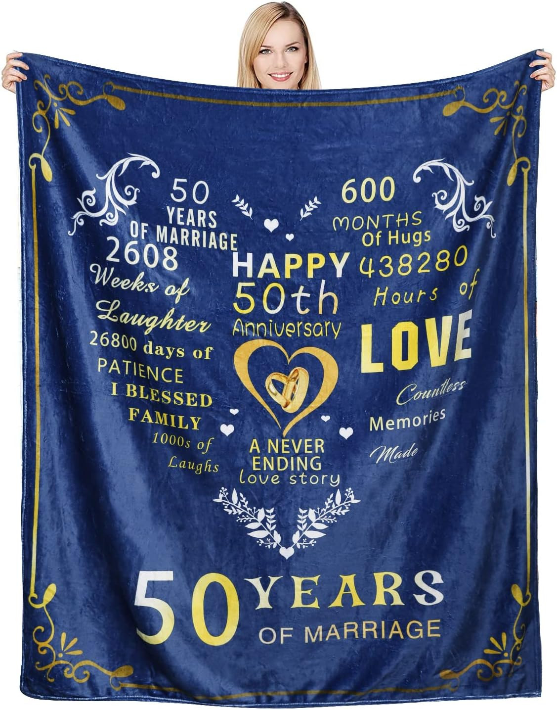 Best 50Th Anniversary Wedding Gifts, 50Th Anniversary Blanket For Parents 60 X 50, Golden Wedding Gift For Couple, 50 Years Of Marriage Throw Blankets
