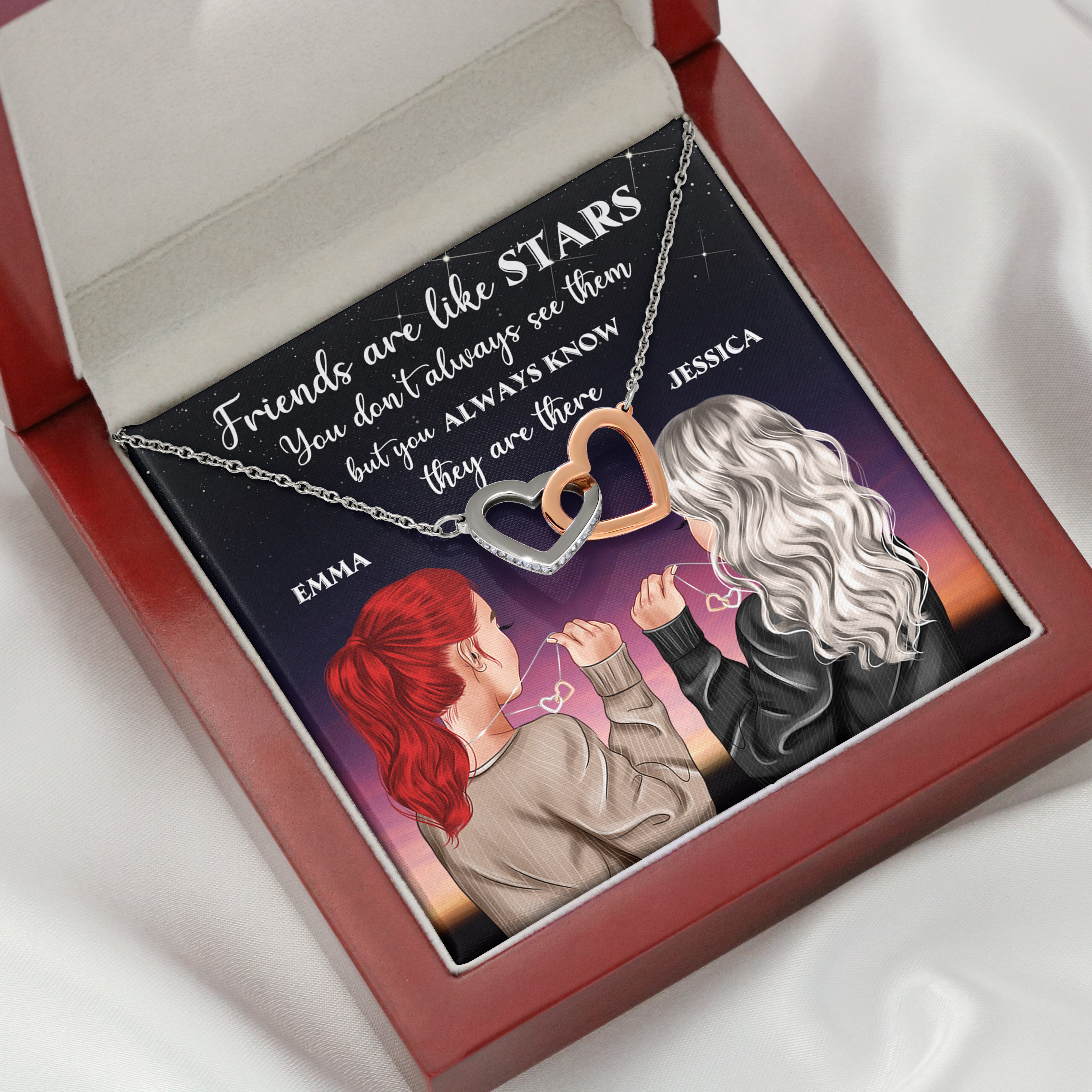 Bestie Friends Are Like Stars – Personalized Interlocking Hearts Necklace