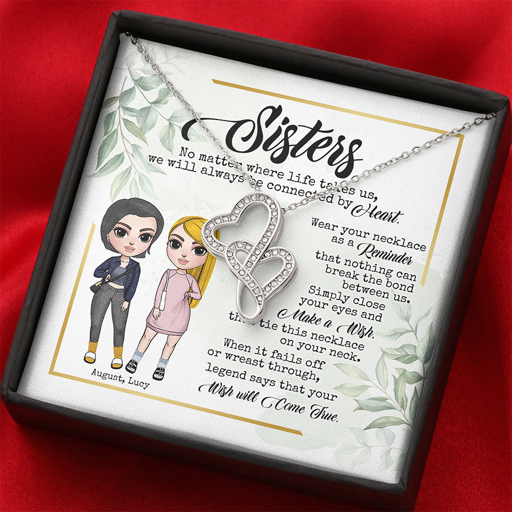 Besties No Matter Where Life Takes Us – Personalized Double Heart Necklace