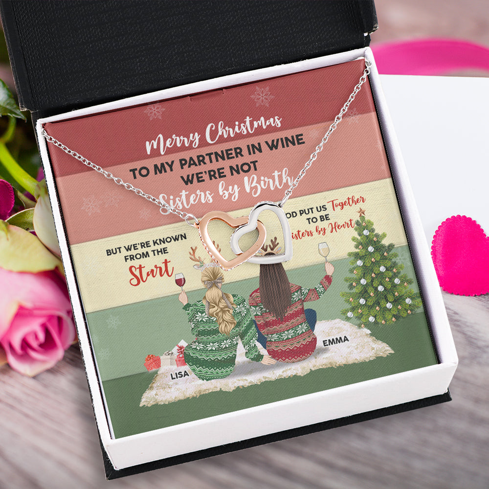 Besties To My Partner In Wine – Personalized Interlocking Hearts Necklace