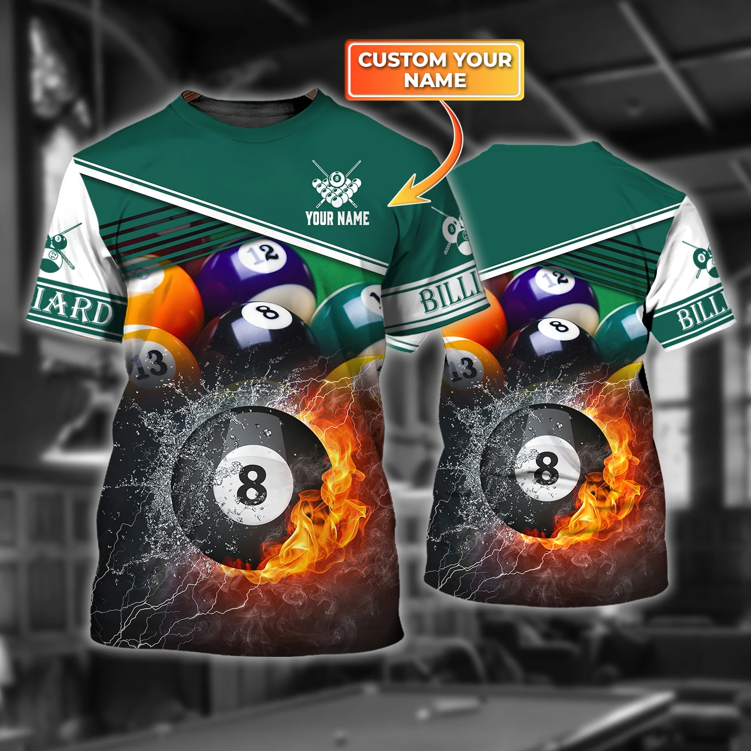 Billiard, Aim Shoot Swear Repeat – Personalized Name 3D Tshirt