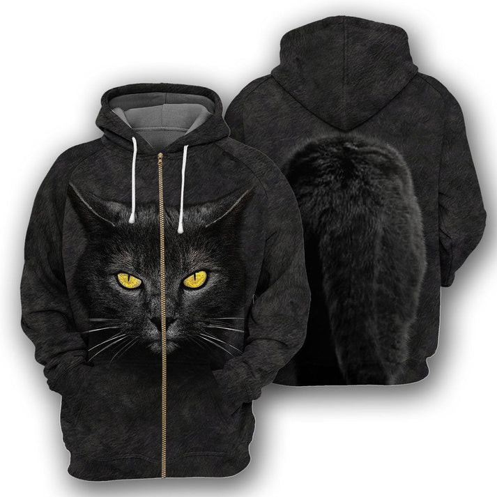 Black Cat 3D All Over Printed Shirt, Black Cat Hoodie, Zip Hoodie, Black Cat Sweatshirt For Men And Women