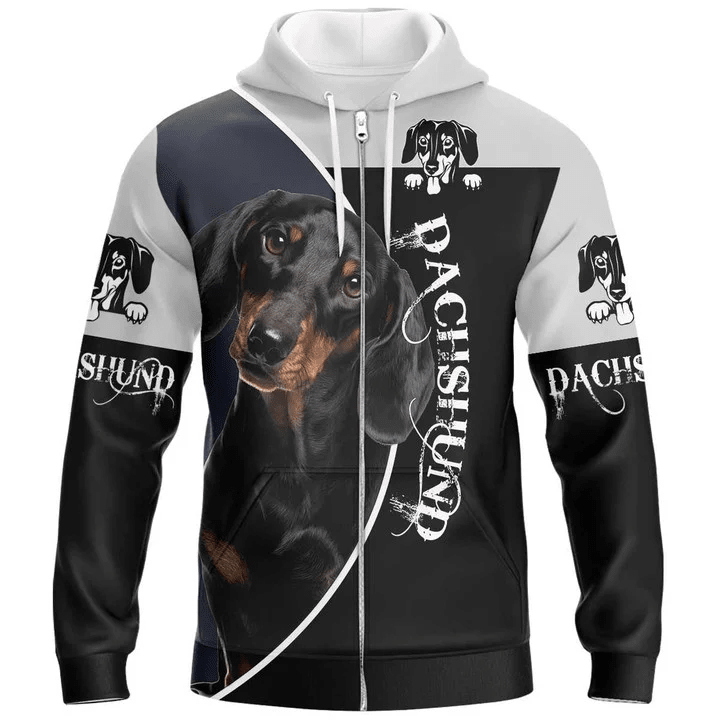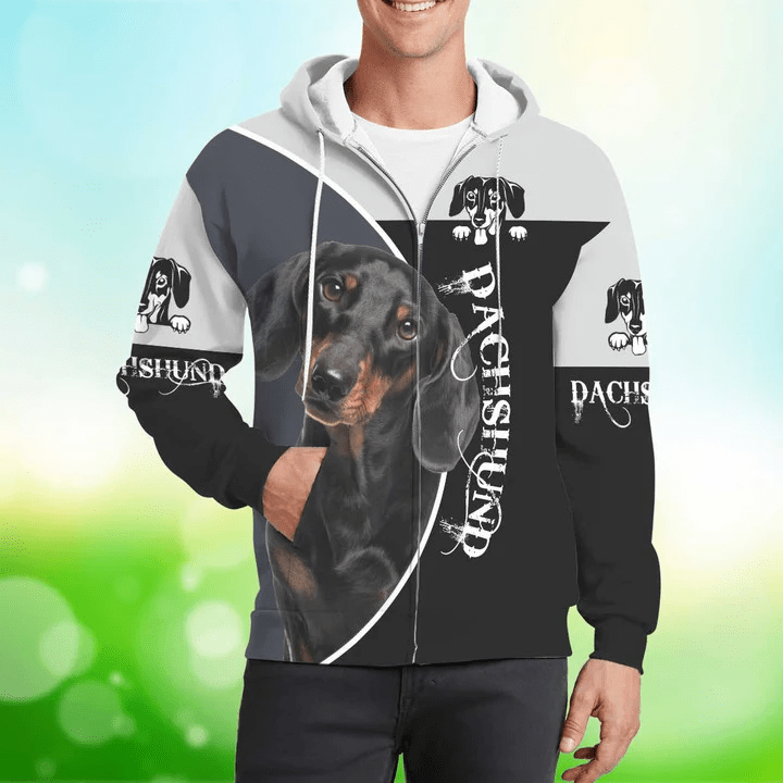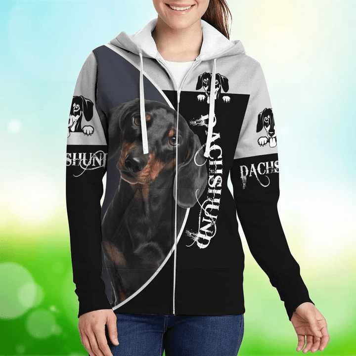 Black Dachshund Zipper Hoodie, Dog Zipper Hoodie